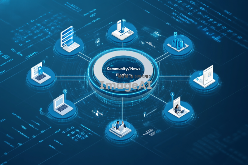 이 이미지는 ICT 커뮤니티/뉴스 플랫폼의 다양한 기능과 특징을 한눈에 볼 수 있게 해주며, 회원들 간의 활발한 상호작용과 정보 교류를 시각적으로 표현합니다