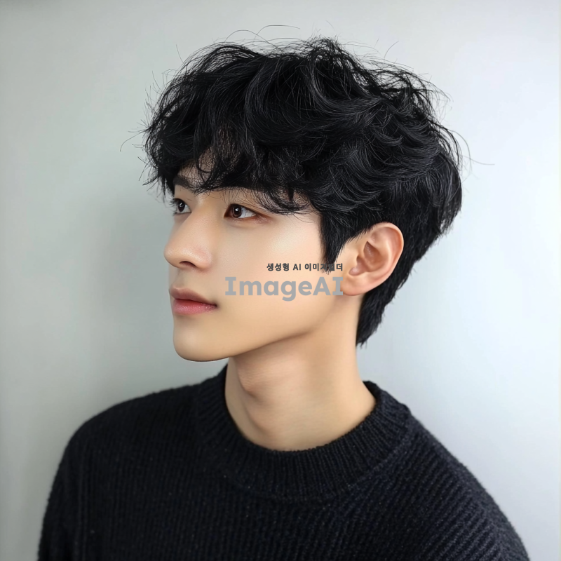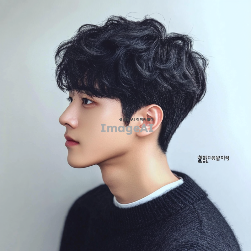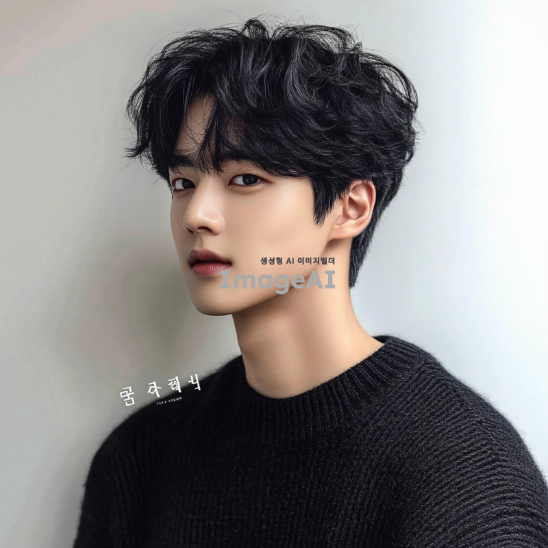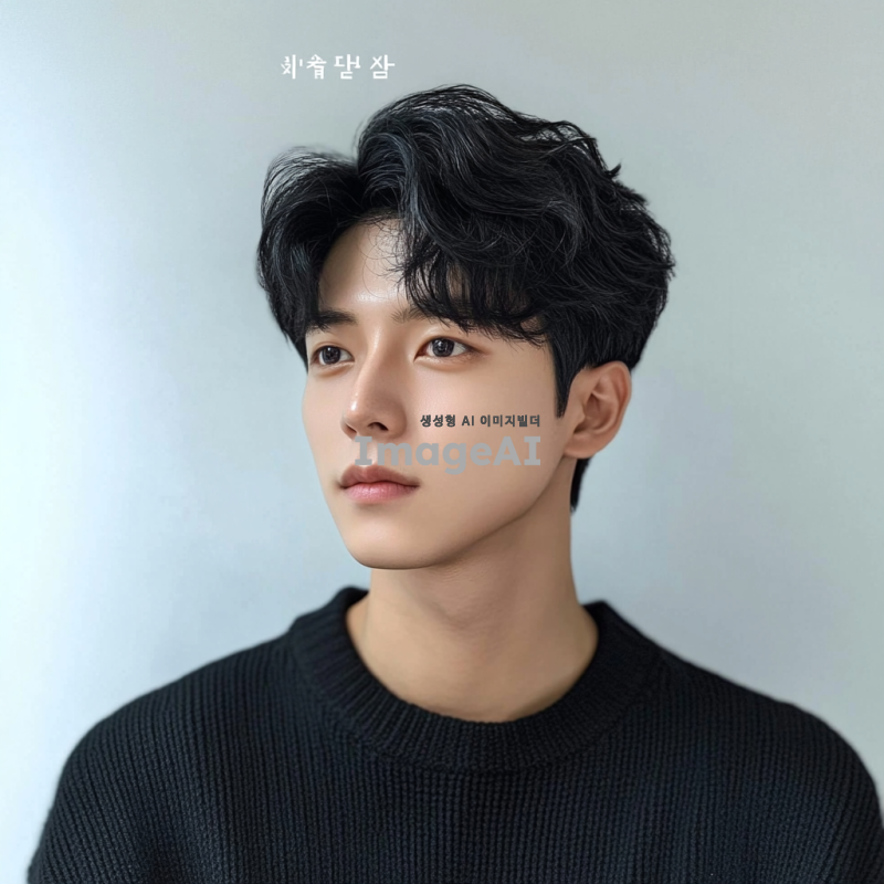 평범한 한국 남자, 검은 머리를 옆으로 가르마를 타고 웨이브 질감의 짧은 헤어스타일로 하고 있습니다. 그는 오버사이즈 검정 스웨터를 입고 있습니다. 배경 색상은 그의 프로필을 강조하기 위해 흰색 이어야 합니다. 자연스러운 피부 톤을 유지하고 정면을 바라보며 자신감 있는 모습으로 보이도록 하세요. 사진이 선명하고 자세히 보이도록 하세요.
