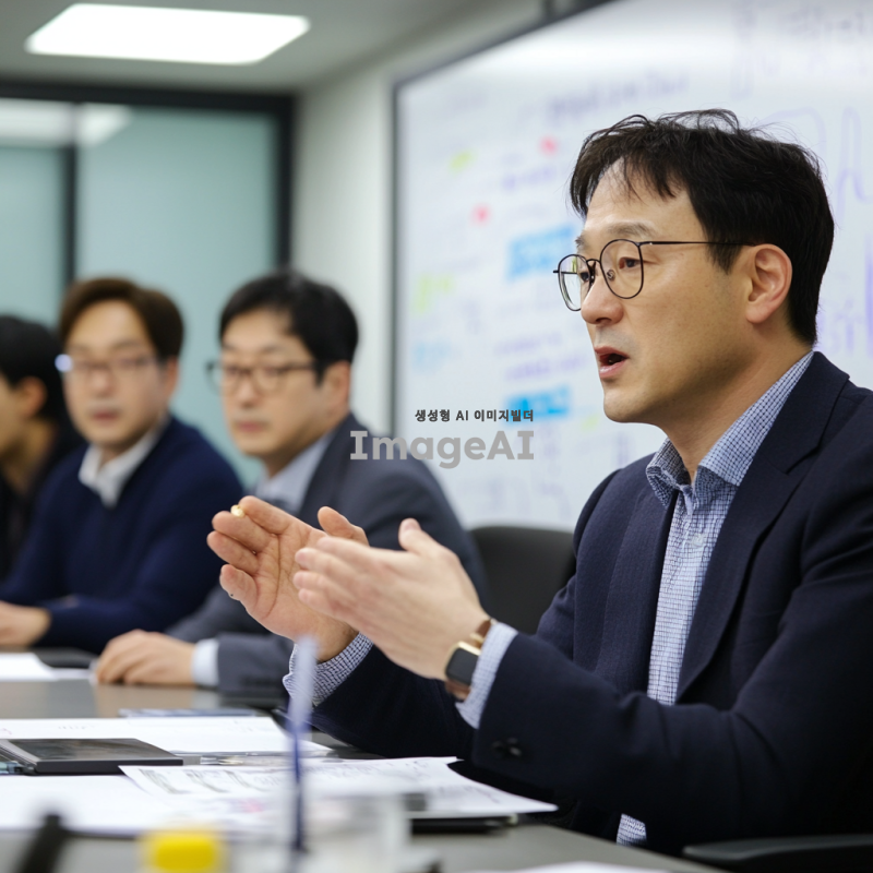 설 명절을 맞아 지역 경제 활성화와 소상공인 매출 증대를 위한 회의 중인 중소벤처기업부 관계자들, 회의실에서 다양한 의견을 나누고 있는 모습, 화이트보드에 아이디어가 적혀 있고, 참여자들은 진지하게 토론 중, 한국의 전통적인 설 명절 분위기, 따뜻한 조명과 함께 아늑한 공간, 소상공인 지원을 위한 적극적인 자세가 드러나는 장면.