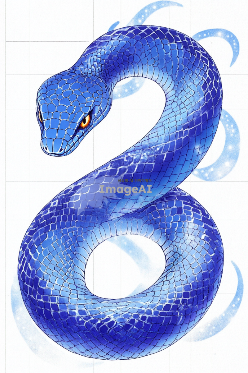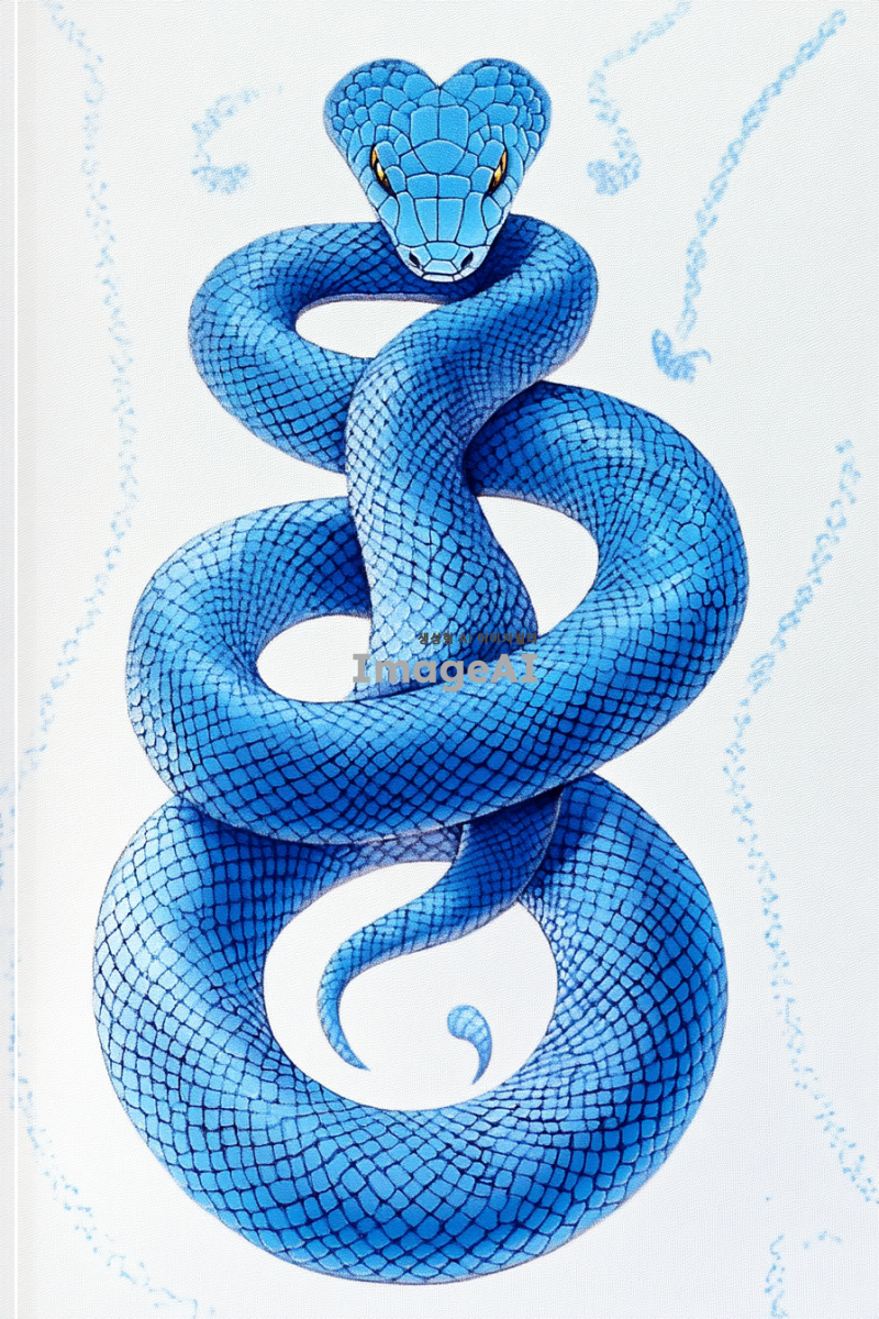 I NEED a blue snake illustration image. It has to be magestic. white wall paper.