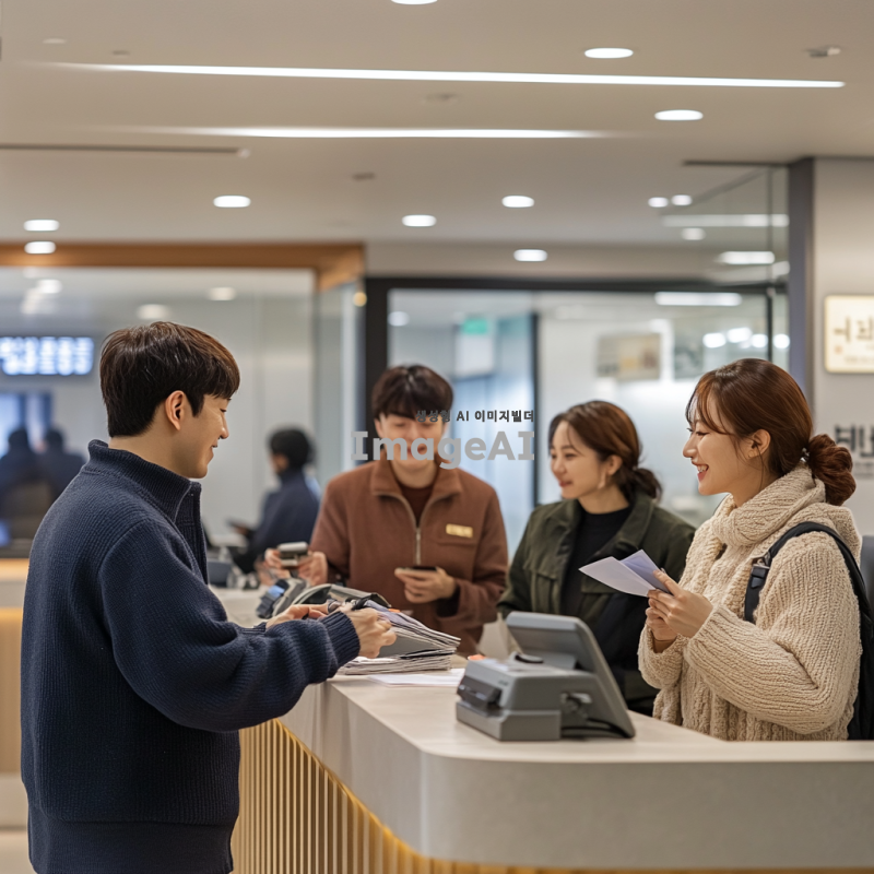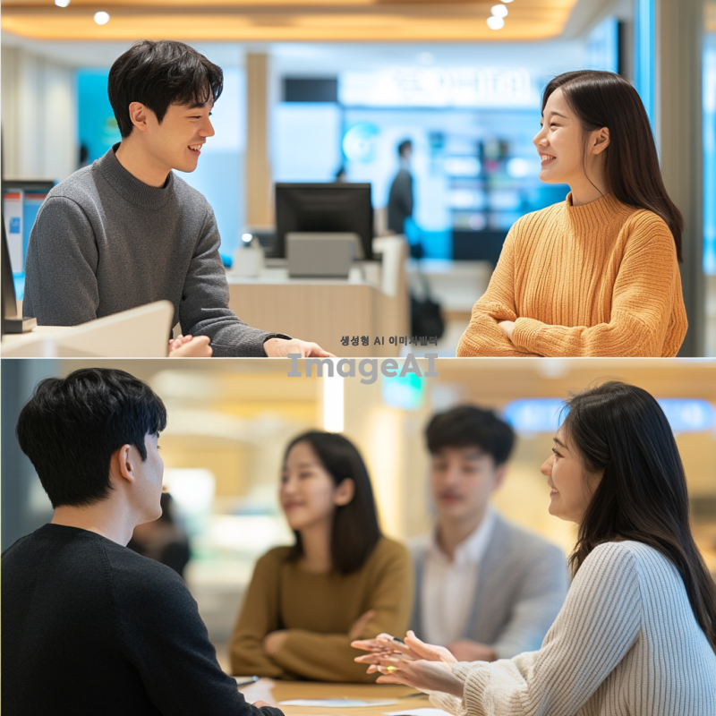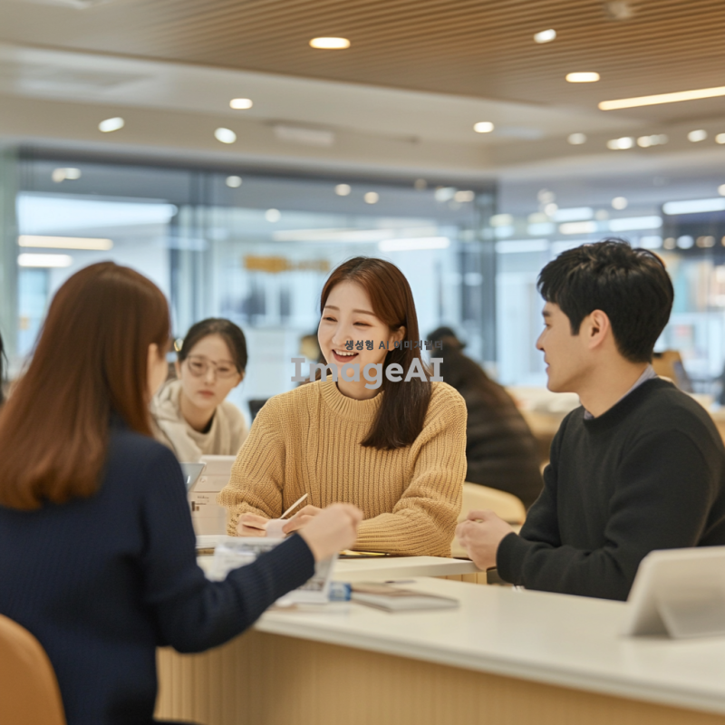 한국의 자립예탁금 제도를 주제로 한 이미지, 현대적인 은행의 내부 모습과 고객이 상담을 받는 장면, 다양한 연령대의 한국인 고객들이 자립예탁금에 대해 이야기하는 모습, 친절한 은행 직원이 고객에게 설명하는 모습, 밝고 따뜻한 분위기, 금융 상담을 받는 사람들의 표정이 진지하고 집중하는 느낌, 현대적인 디자인의 은행 인테리어, 자립적인 금융 관리에 대한 희망적인 메시지 전달.