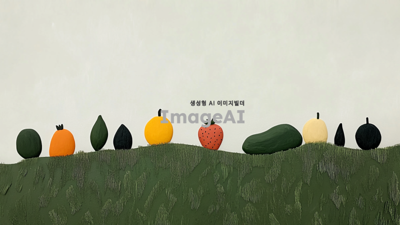 고추, 멜론, 토마토, 딸기가 자생하는 푸르른 밭의 풍경