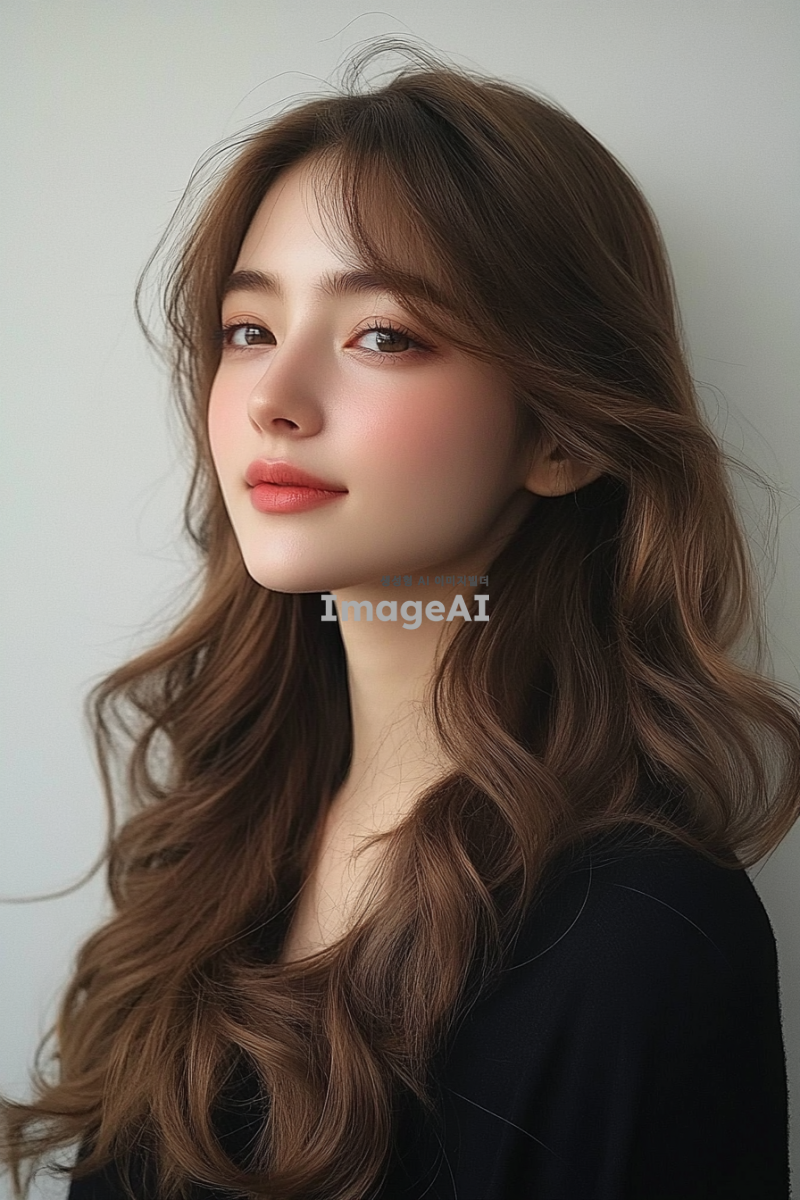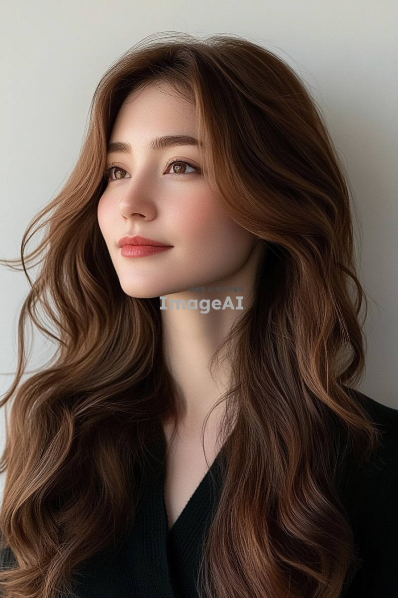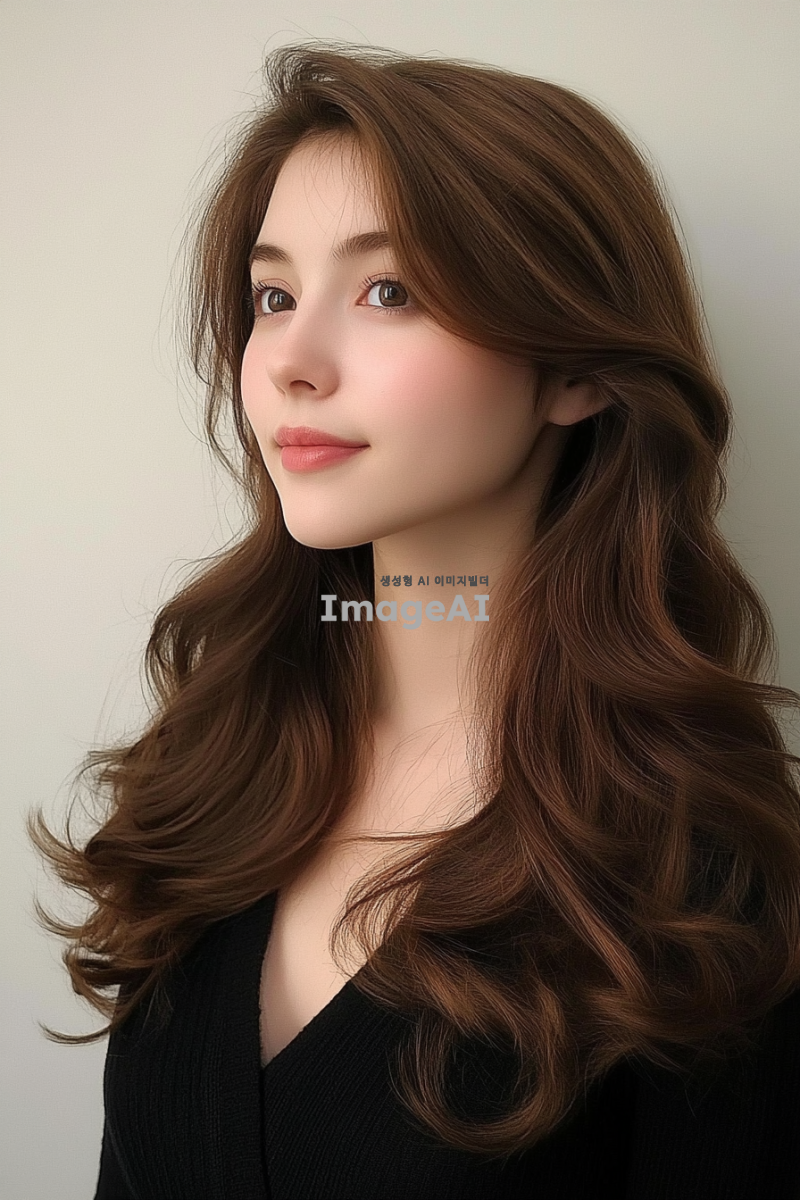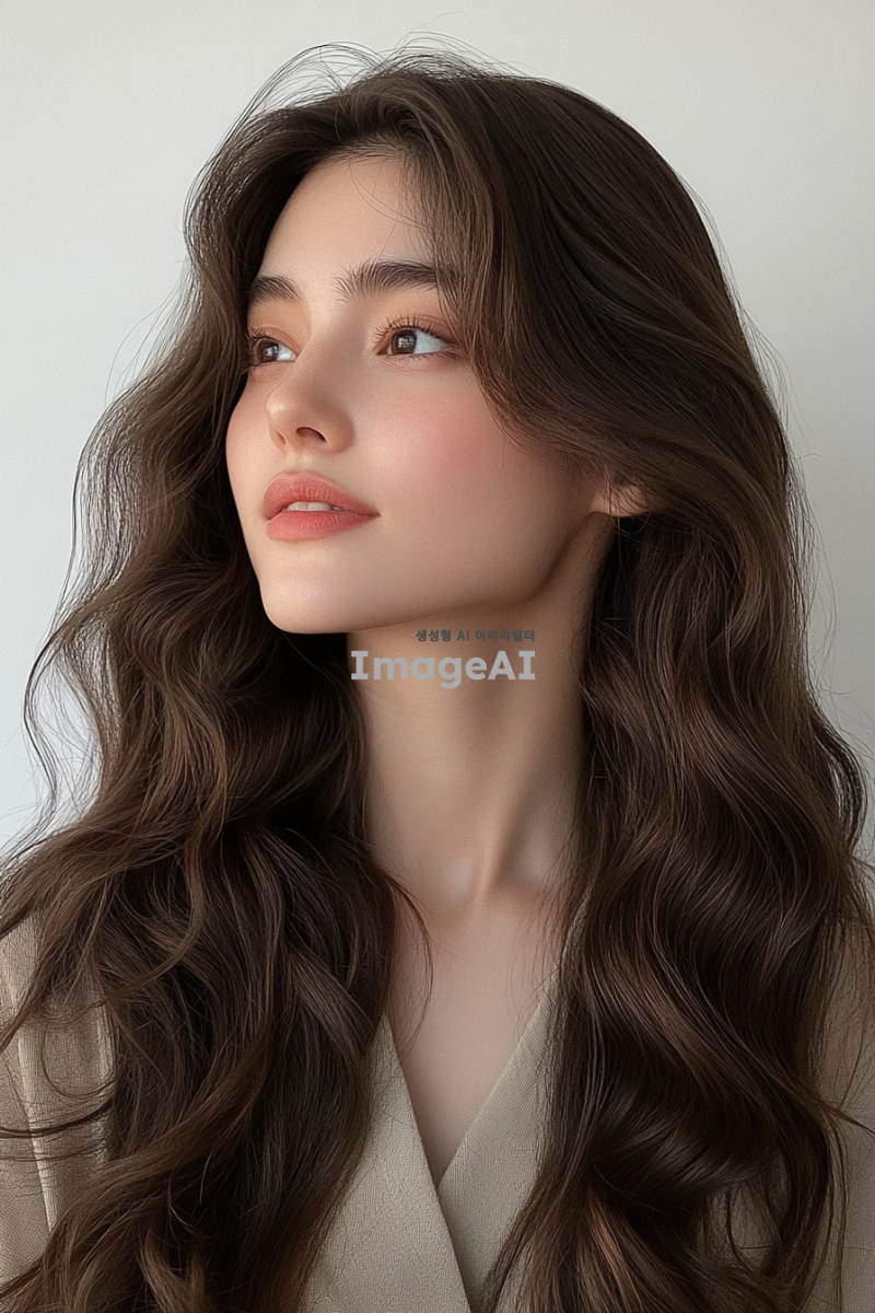 긴머리 웨이브를 한 사진속 여인의 옆모습 입니다. 사진속 인물과 매우 흡사해 보입니다.