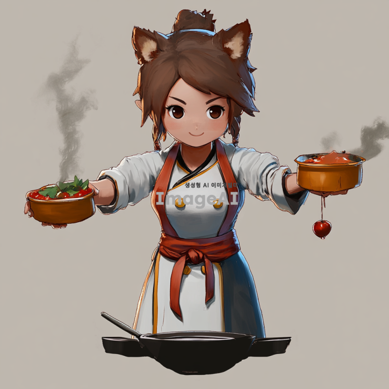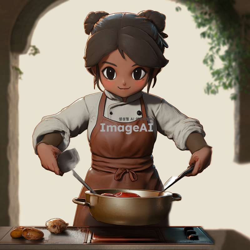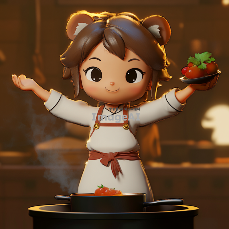 참조 이미지 캐릭터가 요리를 하고 있는 모습