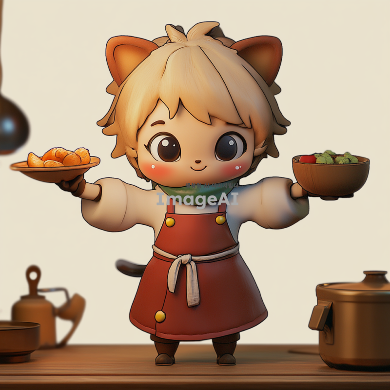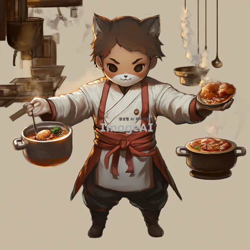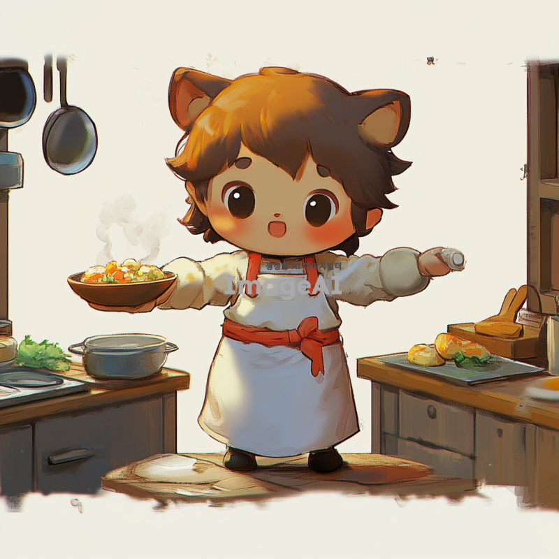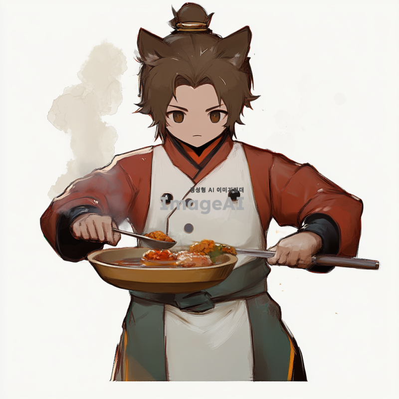 참조이미지의 캐릭터가 음식을 만들고 있는 모습