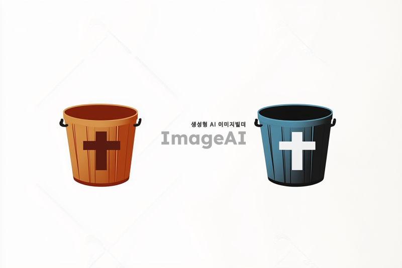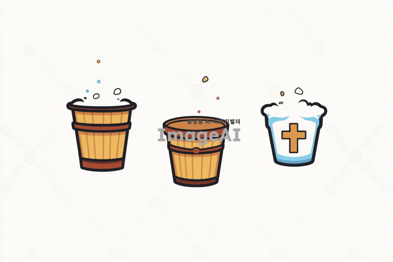 Thurebak 로고 디자인, 두레박 이미지와 십자가를 결합한 형태, 현대적이고 심플한 스타일, 한국적인 요소를 포함하여 세련된 느낌을 주는 색상 조합, 배경은 깔끔하고 단순하게, 로고의 시각적 인상이 강하게 남도록 구성.