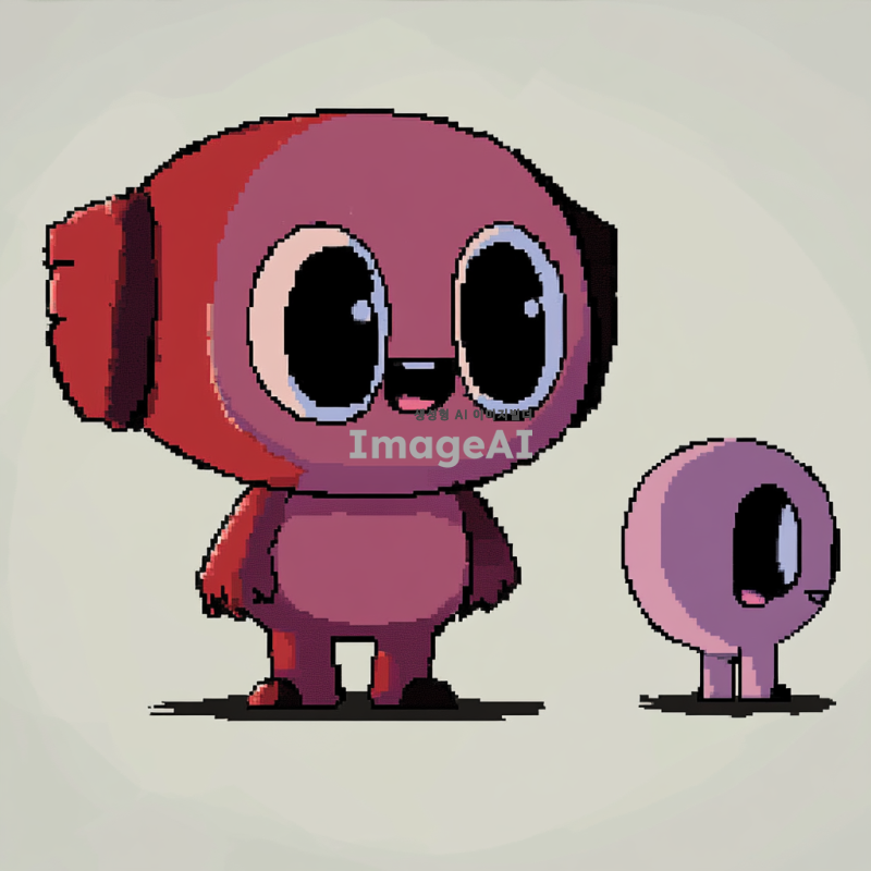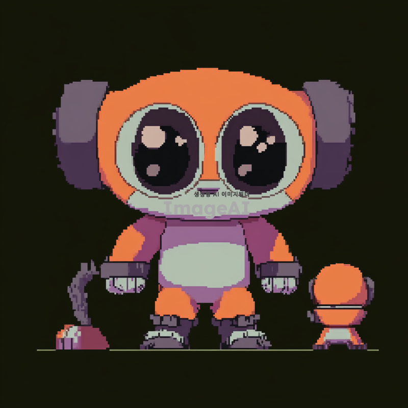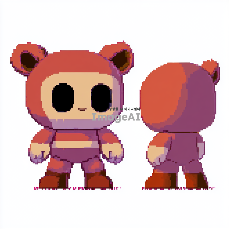 픽셀 도트 캐릭터로 앞면, 뒷면, 양옆면에서 본 모숩