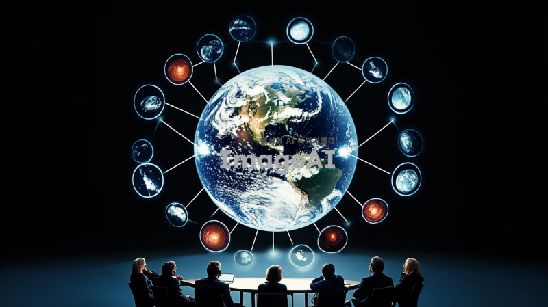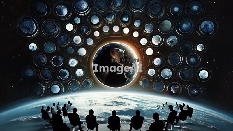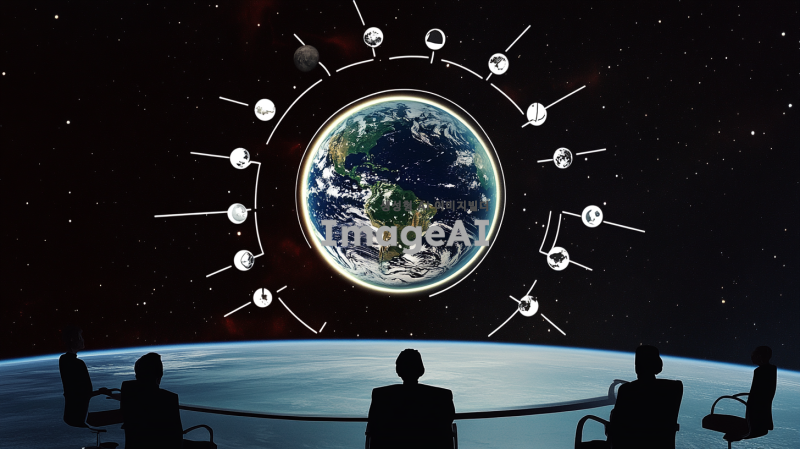 해당 사진에서 중앙에 지구와 연결된 모든 원들의 크기를 두배 키워줘,