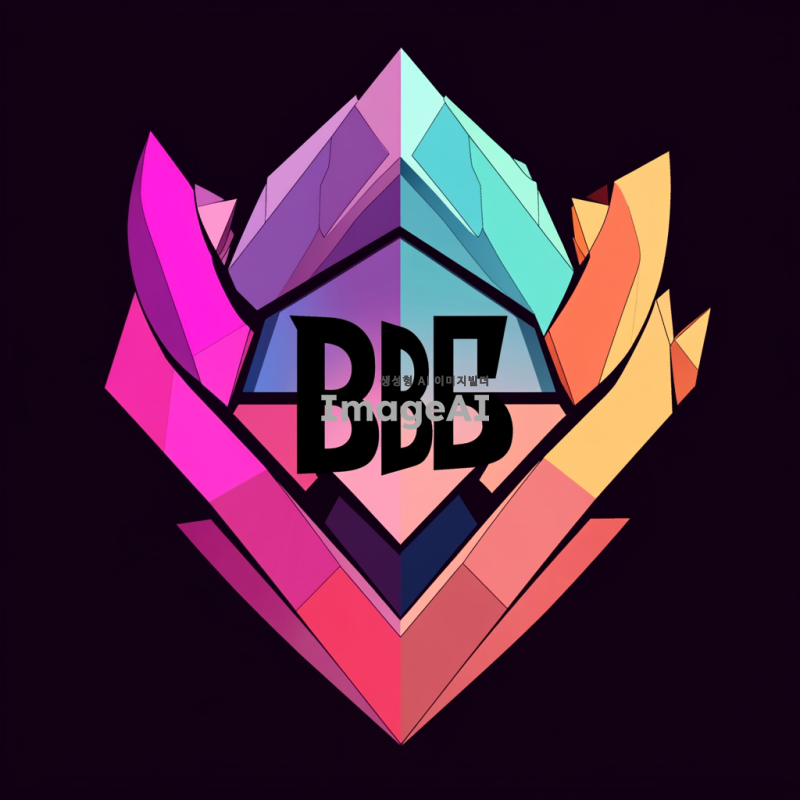 발로란트의 독특한 스타일을 반영한 로고 디자인, 중앙에 'BBB'라는 텍스트가 강조되고, 현대적이고 세련된 느낌을 주는 색상 조합, 게임의 역동성과 에너지를 표현하는 요소들, 배경은 어두운 톤으로 설정하여 로고가 돋보이도록 구성.