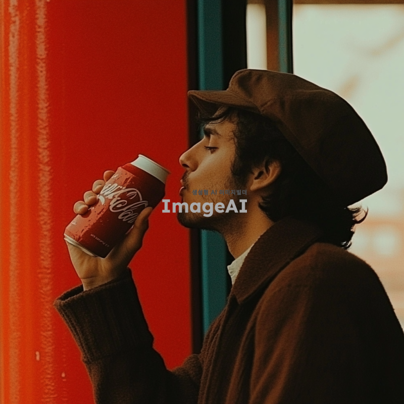 남성이 코카콜라를 마신다. 누가봐도 시원한 탄산감이 느껴진다.