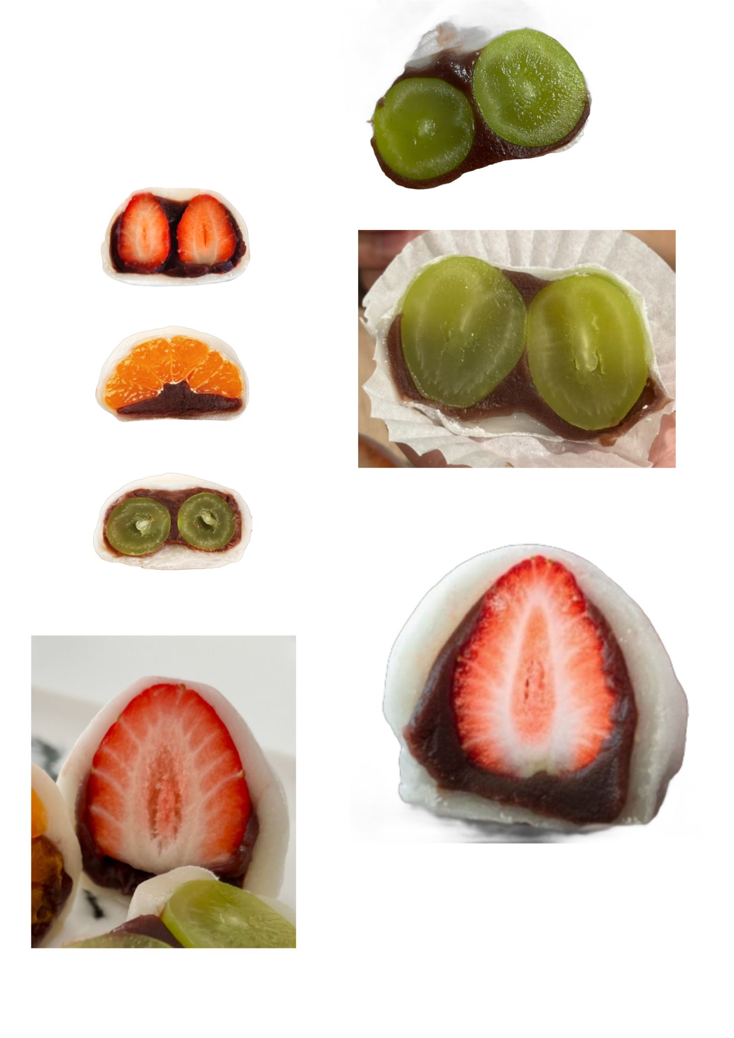 부드러운 흰색 떡 안에 신선한 딸기가 들어있는 딸기모찌, 상큼한 딸기의 붉은색과 떡의 부드러운 질감이 잘 어우러진 모습, 배경은 아기자기한 일본 전통 차실, 조명이 따뜻하고 아늑한 분위기, 디테일한 식감과 색감 표현.