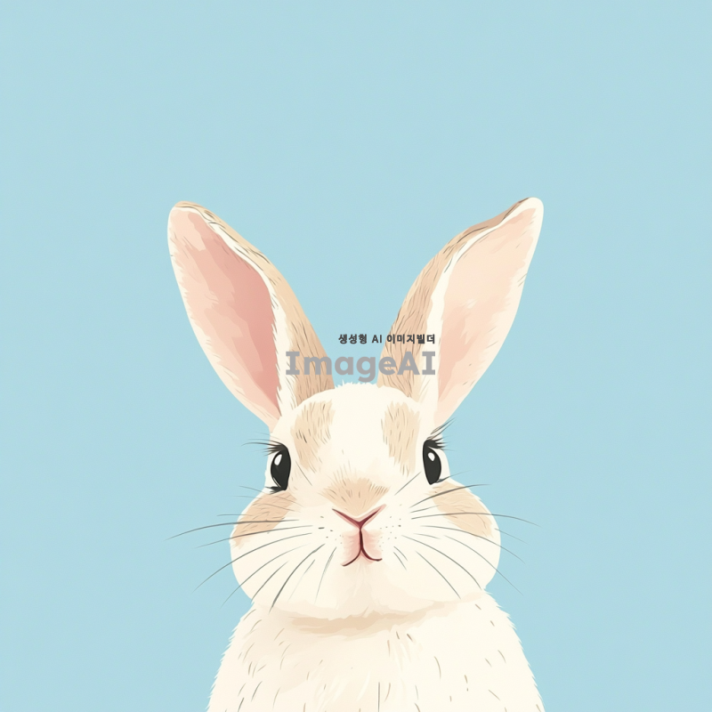 하늘색 배경에 귀여운 토끼가 있는 일러스트, 사랑스러운 느낌의 파스텔톤 색상으로 디자인된 아이폰 배경화면.