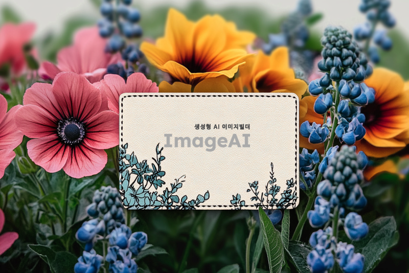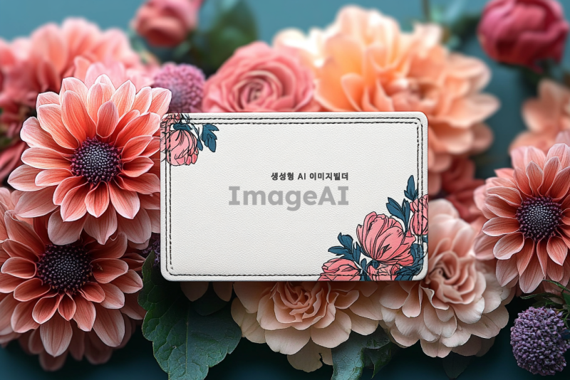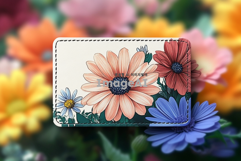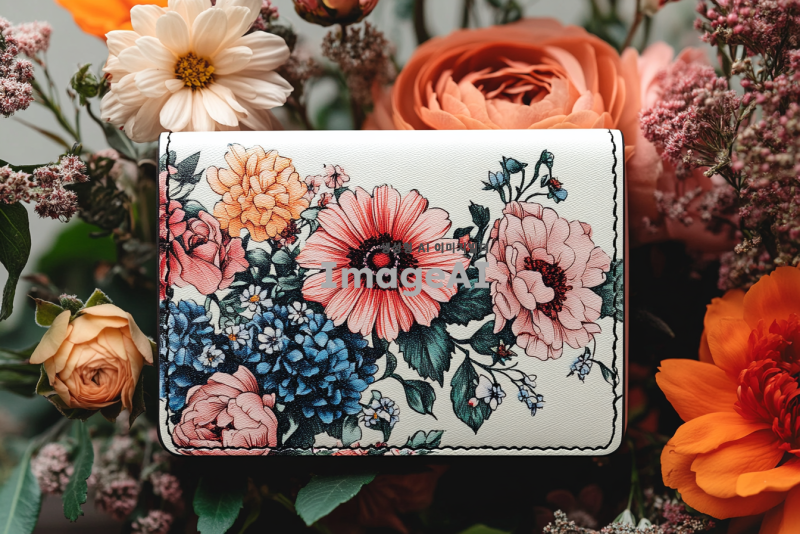 화려한 꽃들 사이에 카드지갑이 돋보이게 해줘