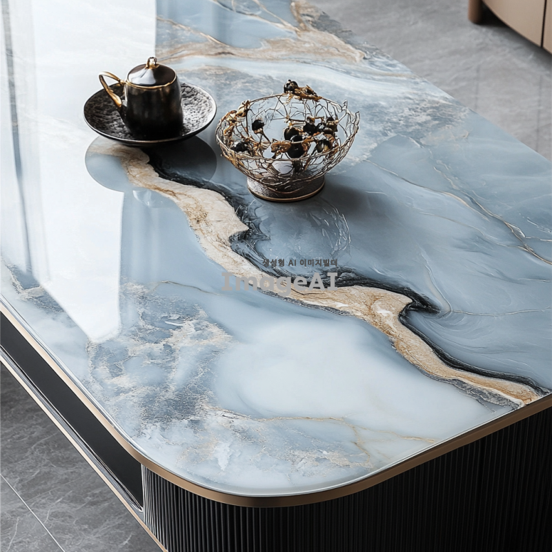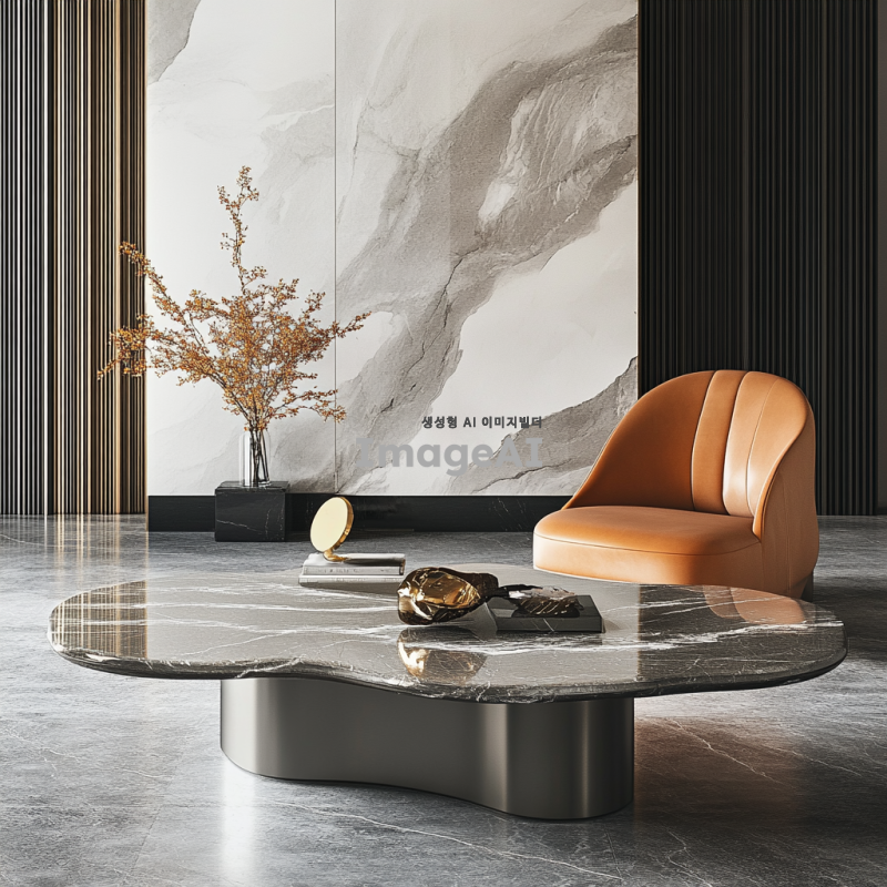 고급스러운 느낌의 질감, 메탈이나 대리석 느낌도 좋음, 곡선의 매끄러운