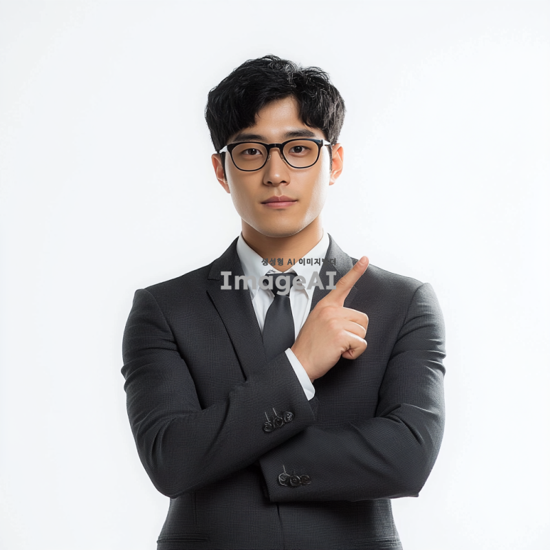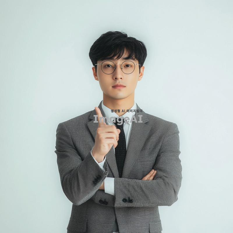 젊은 한국 남성이 20대 초중반으로, 안경을 쓰고 정장 차림의 수트와 넥타이 또는 블레이저와 슬랙스를 입고 팔짱을 끼고 흰색 배경에 서 있습니다. 그는 짧은 검은 머리를 가지고 있으며 면도하지 않았고 얼굴 털이 없습니다. 이 사진은 그가 카메라의 눈을 직접 바라보는 진정한 순간을 포착해야 하며, 전문적인 비즈니스맨으로서의 인상을 줍니다.