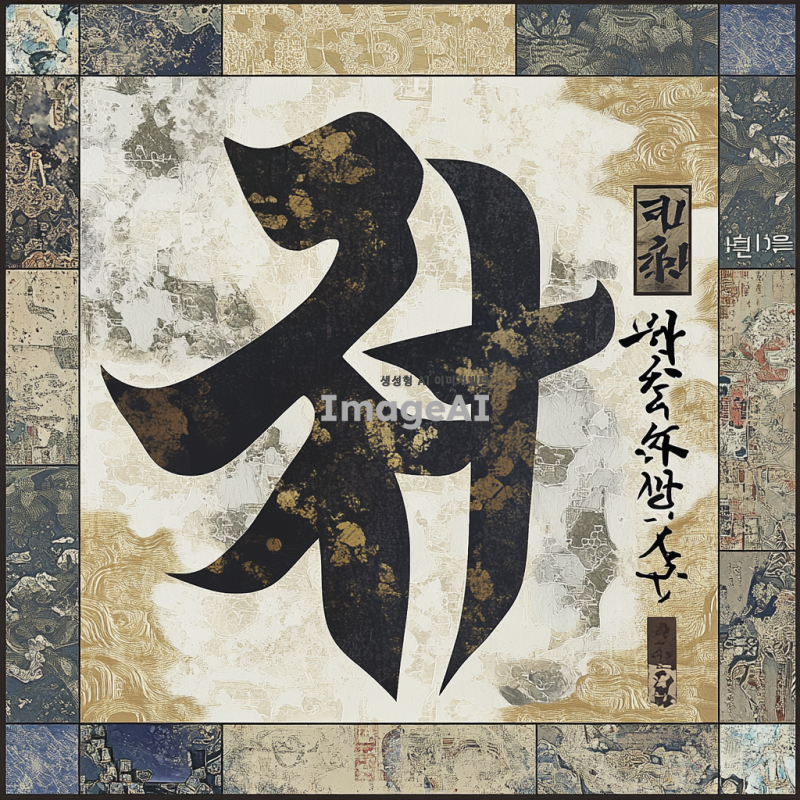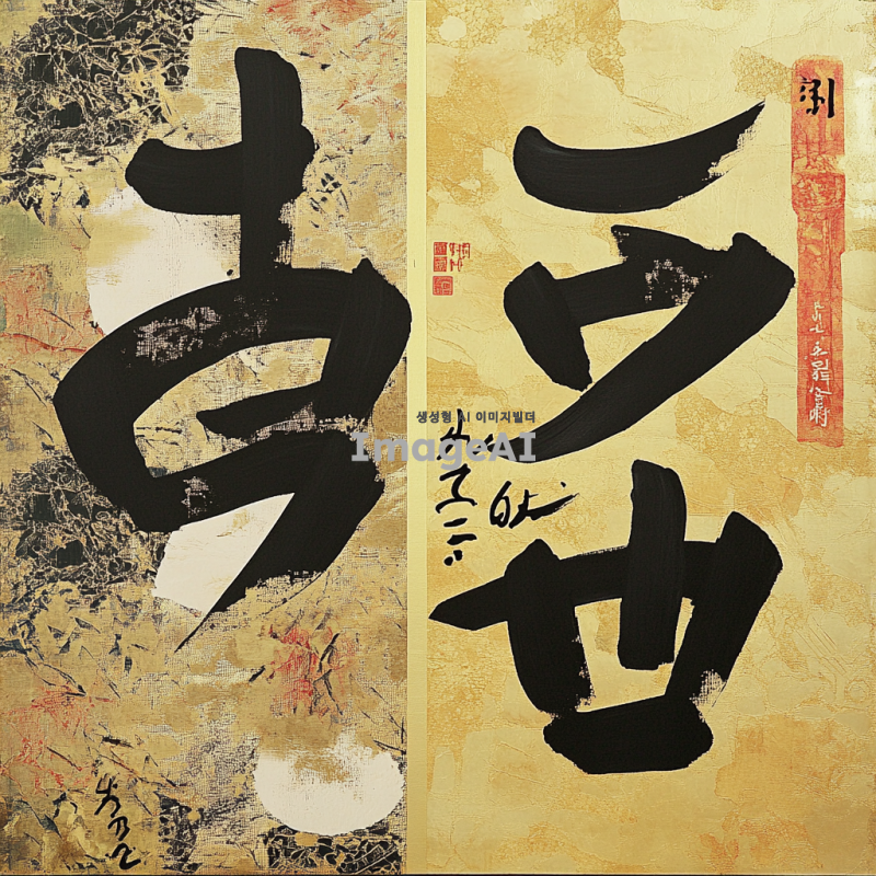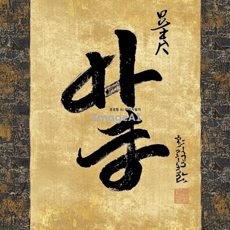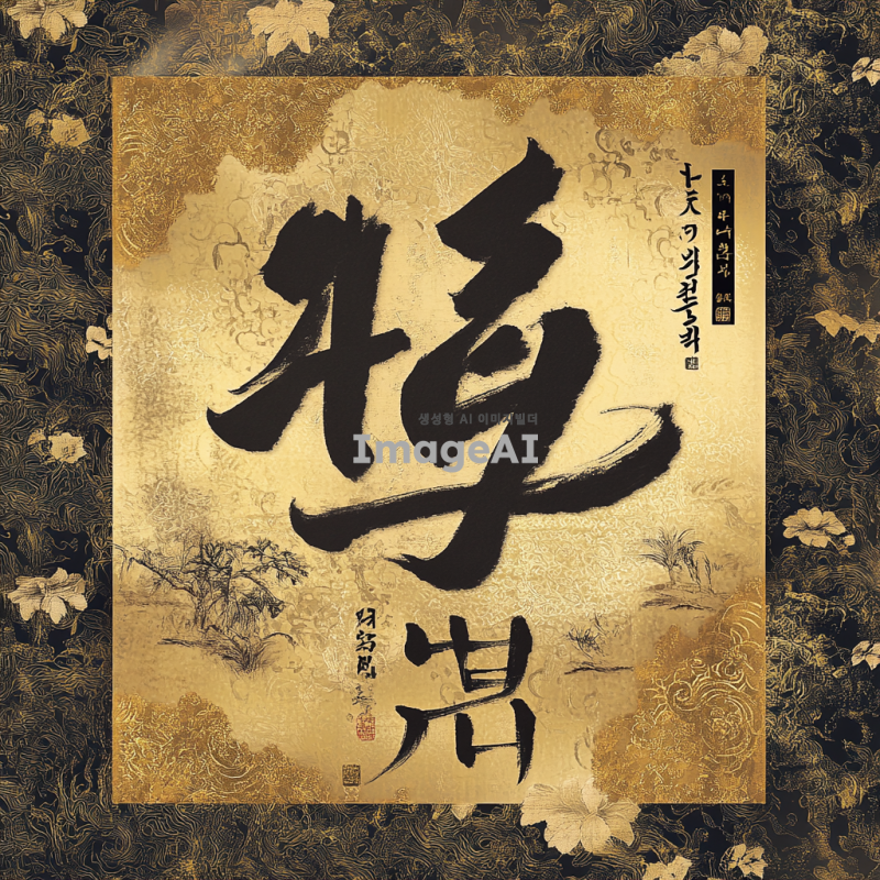 화려한 붓글씨 스타일로 "爆酒"라는 한자를 중심으로 한 작품을 생성해 주세요. 배경은 전통적인 한국의 문양으로 꾸미고, 색상은 금색과 검정색의 조화를 이루도록 하여 고급스러운 느낌을 강조해 주세요. 글자의 크기와 형태는 역동적이고 힘찬 느낌을 주도록 디자인해 주세요.