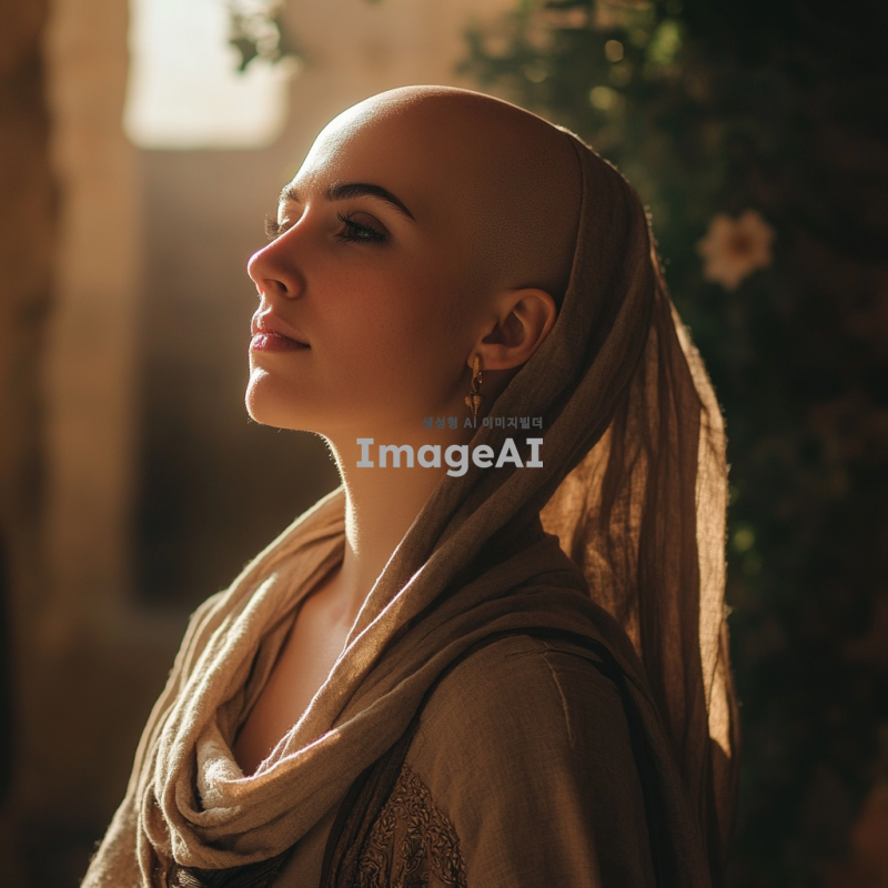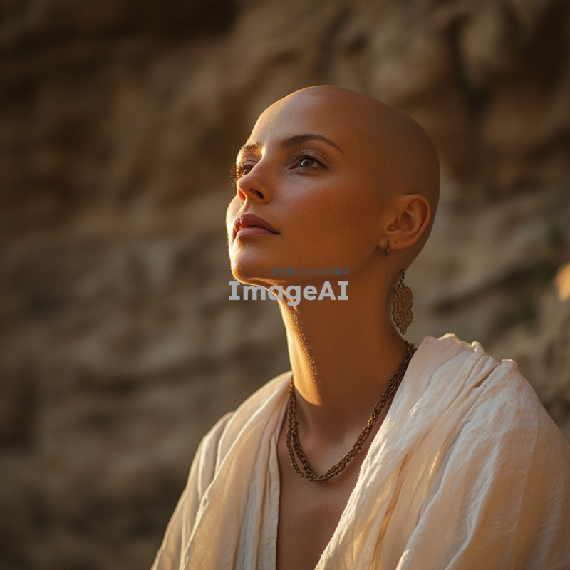 엘리사, 대머리 모습, 고대 이스라엘 배경, 성경의 분위기, 지혜로운 표정, 신비로운 빛, 전통적인 의상, 신앙과 기도의 상징, 평화로운 자연 풍경, 따뜻한 색조
