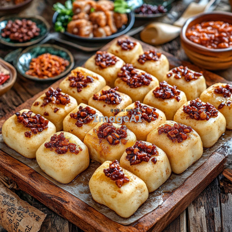 붕어빵이 팥앙금을 내장처럼 흘리고 있는 모습, 따뜻한 색감의 배경, 부드러운 질감의 붕어빵, 팥앙금이 흐르는 디테일이 강조된, 한국 전통 간식의 매력을 살린 그림