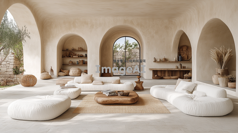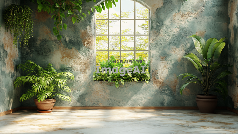 19:6의 가로 비율을 가진 벽, 중앙에 긴 창문이 하나 있는 모습. 벽은 부드러운 색상으로 칠해져 있고, 창문은 자연광이 들어오도록 설계되어 있으며, 벽의 텍스처는 미세한 패턴이 있어 따뜻한 느낌을 주며, 전체적으로 평화롭고 조용한 분위기를 자아낸다.
