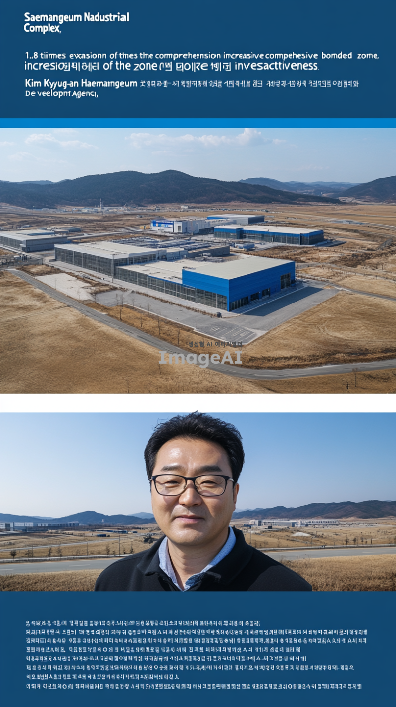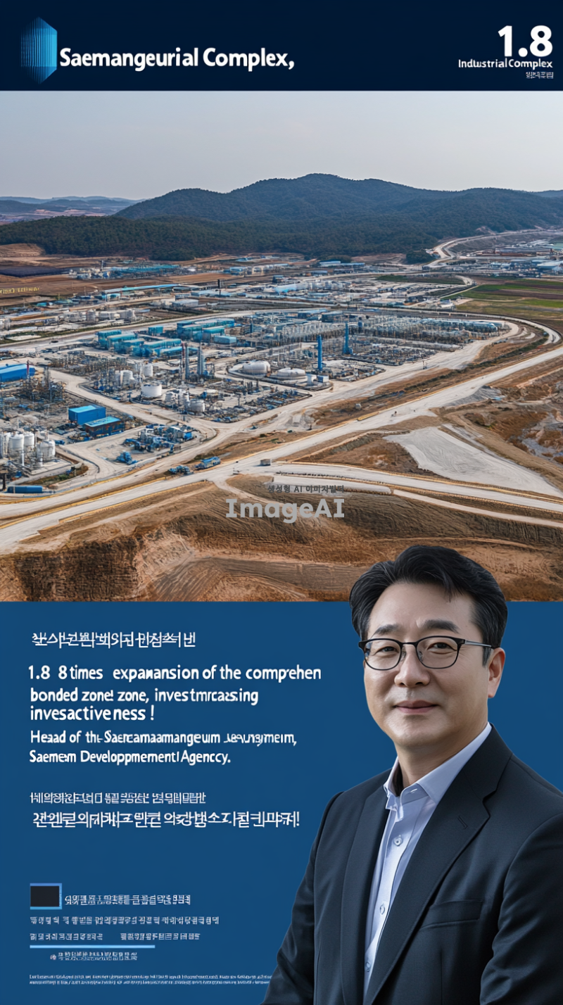 새만금개발청 로고와 함께 "새만금 국가산단, 종합보세구역 1.8배 확대로 투자 매력도 UP!" 이라는 자막 띄우기