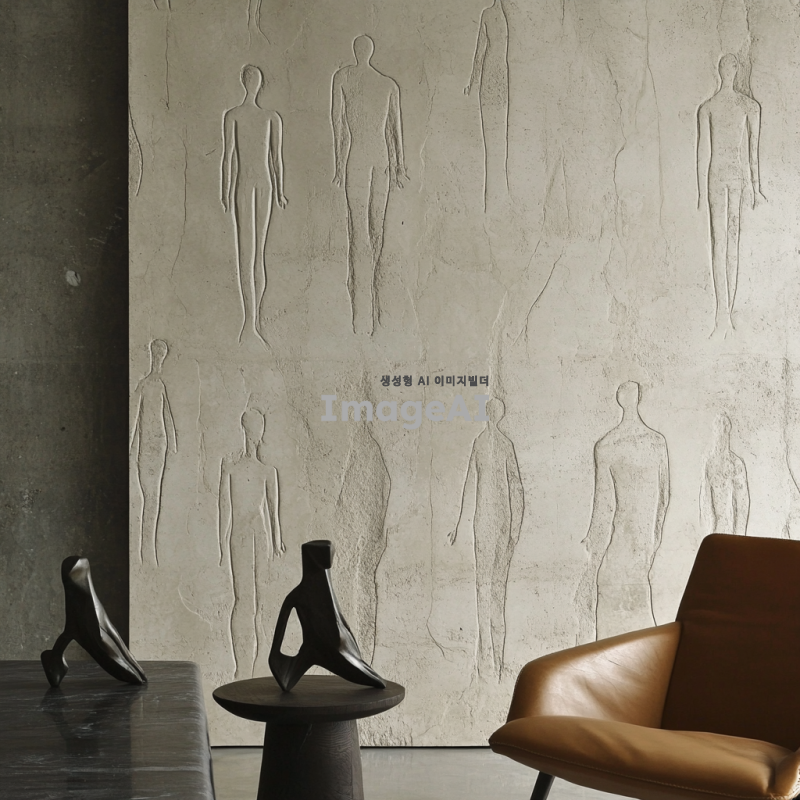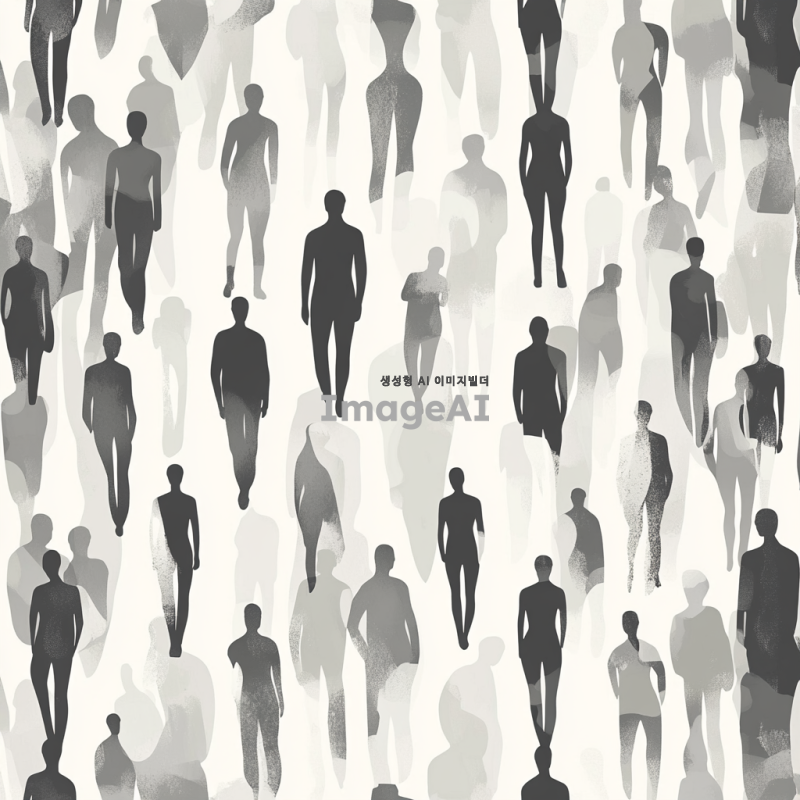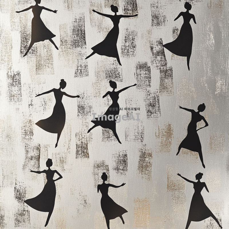 사람 실루엣을 패턴화한 은메달 디자인, 다양한 포즈의 한국인 실루엣들이 조화롭게 배열된 형태, 현대적인 느낌과 세련된 스타일, 전체적으로 미니멀하면서도 독창적인 디자인.