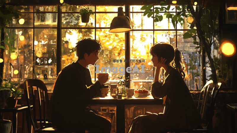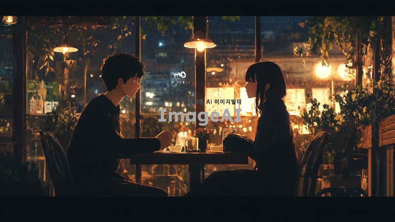 카페의 아늑한 조명과 따뜻한 분위기 속에서 그들의 사랑이 다시 시작되는 장면.