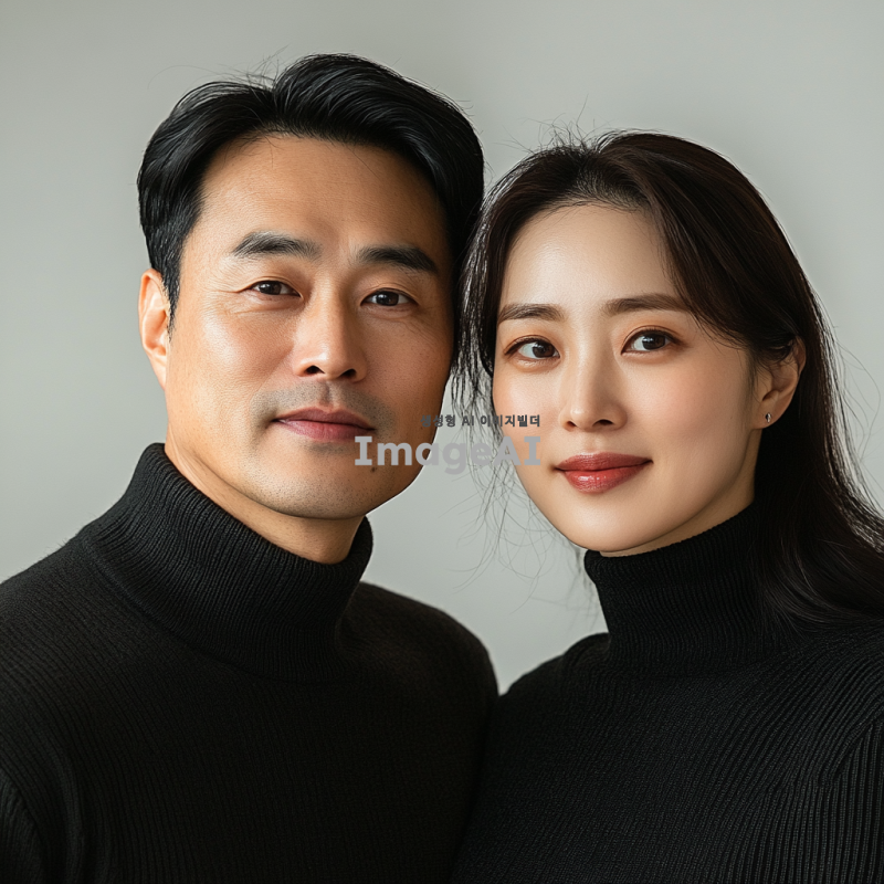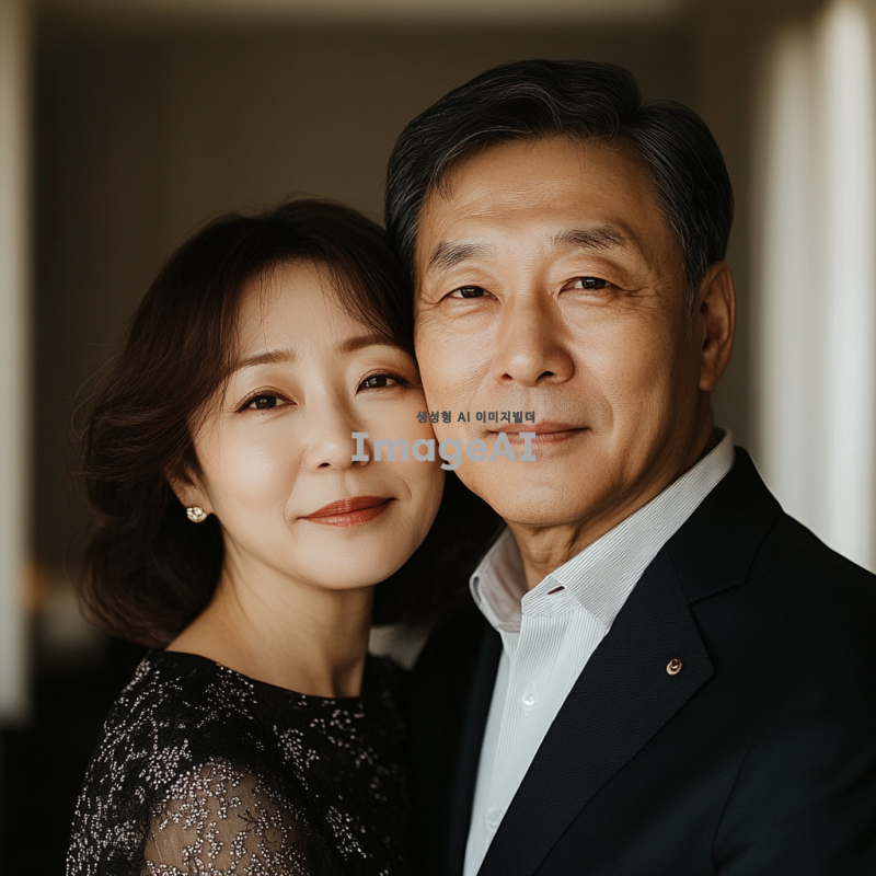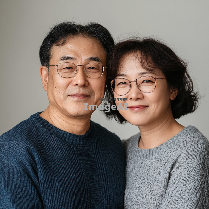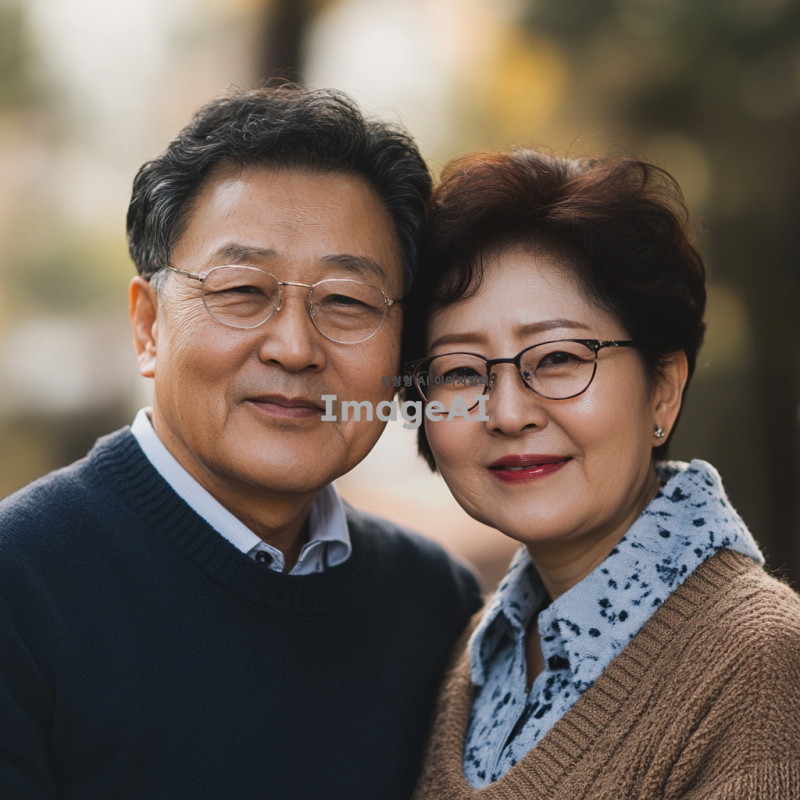 부모님커플사진, 한국인부부, 서로다정하게 카메라를 보고 있다