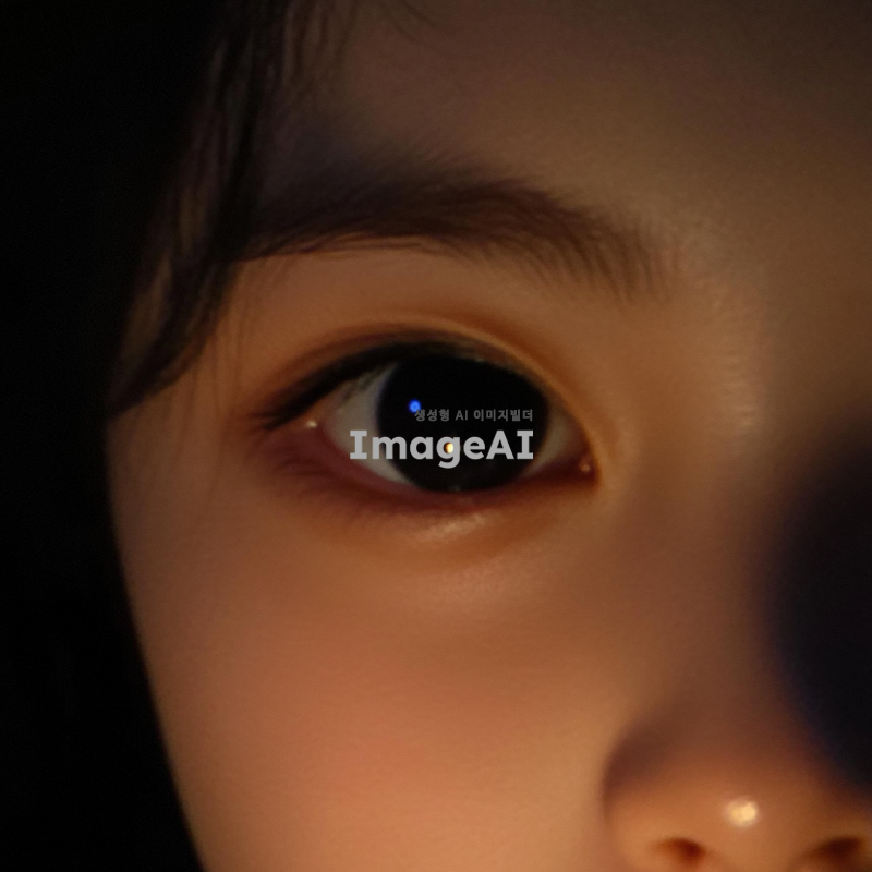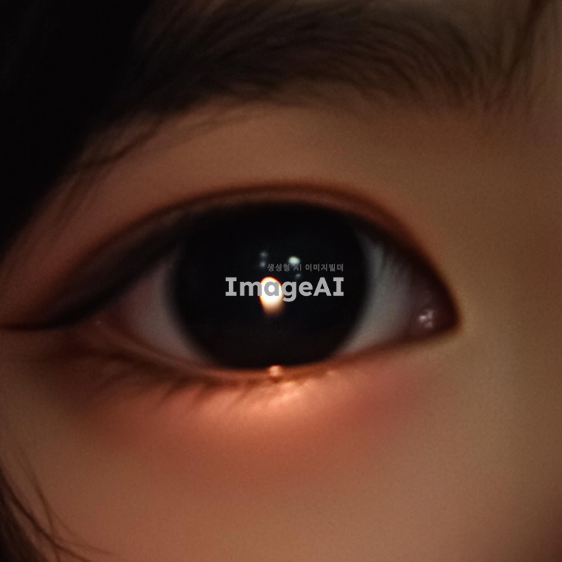 촛불의 따스한 빛이 비치는 한국인의 눈동자, 어두운 배경 속에서 촛불의 불빛이 반사되어 신비롭게 빛나는 눈, 감정이 담긴 깊은 시선, 부드러운 표정과 함께 촛불의 따뜻한 색감이 강조된 분위기.