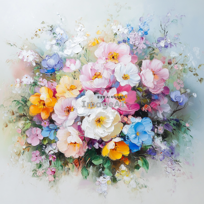 아름다운 꽃다발을 그린 그림,배경은 흰색으로