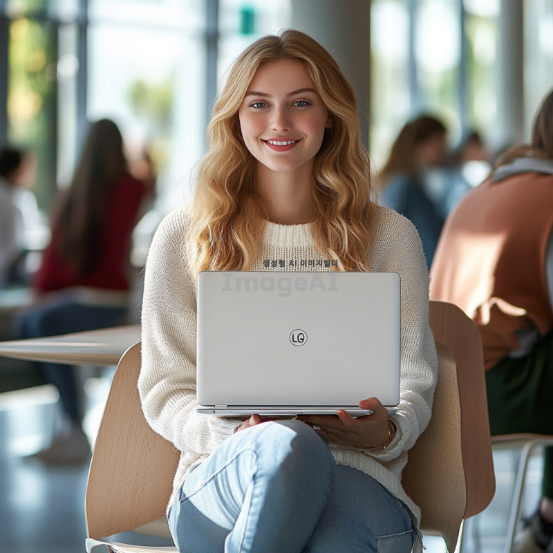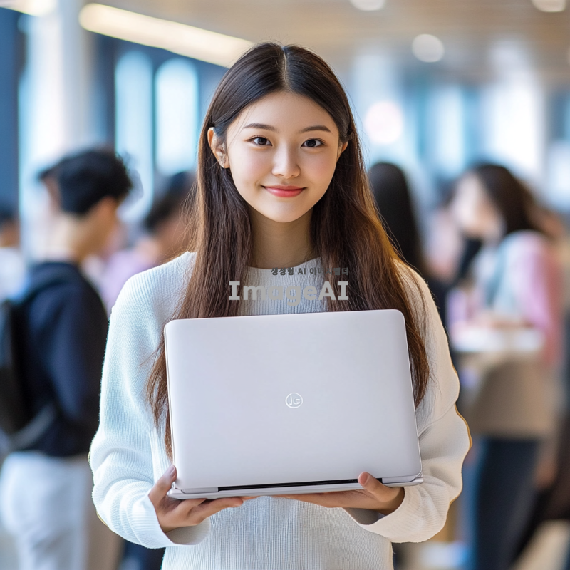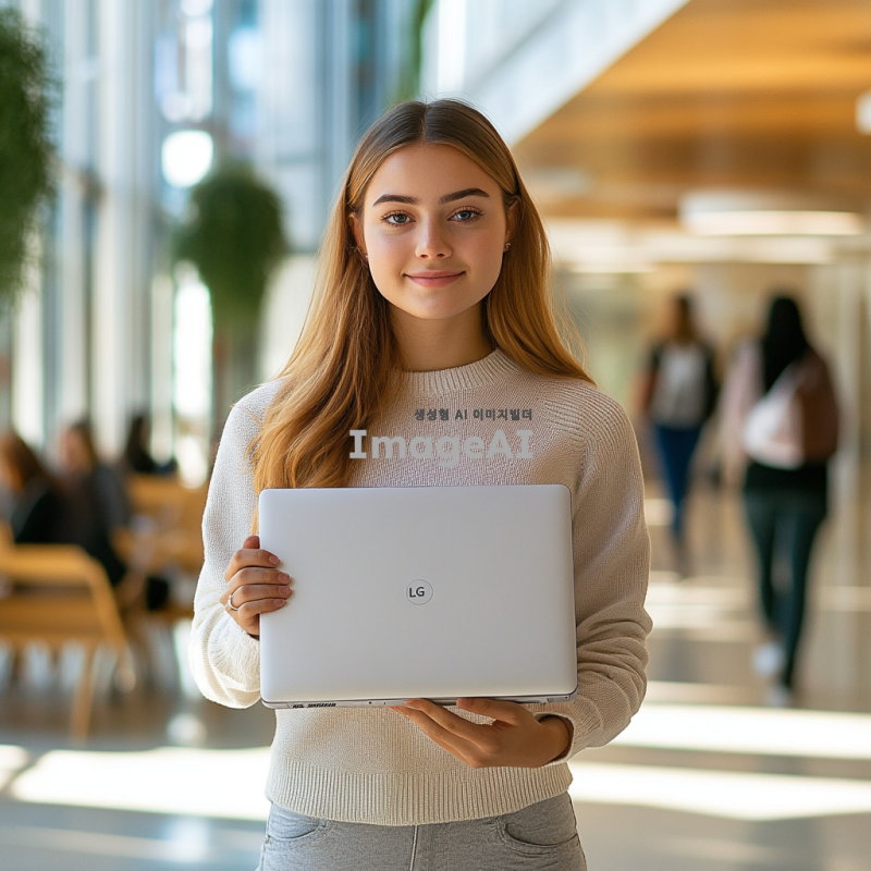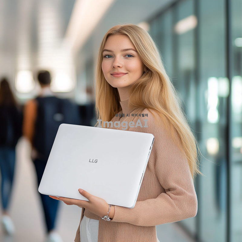 엘지전자 흰색 그램 노트북을 들고 있는 여대생 현대적인 학습 환경