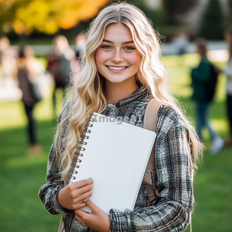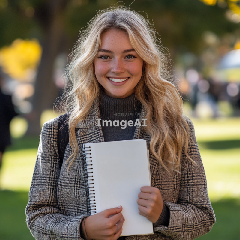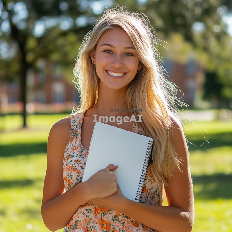 캠퍼스 잔디밭에서 흰색 그램 노트북을 들고 있는 여리여리한 금발여대생