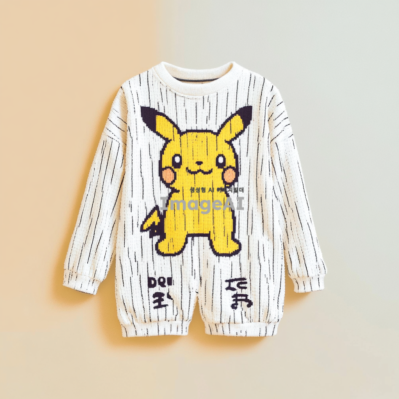 포켓몬스터에 등장하는 두리쥐가 그려진 수면잠옷을 그려줘. 최대한 첨부한 이미지와 비슷하게 생기게 그려주되, 레터링과 같은 다른 무늬 없이 심플하게 두리쥐 그림만 그려져 있었으면 좋겠어. 그리고 실사 이미지 보다는 아동용 만화에 나올 법한 귀엽고 아기자기한 그림체로 그려줬으면 좋겠어.