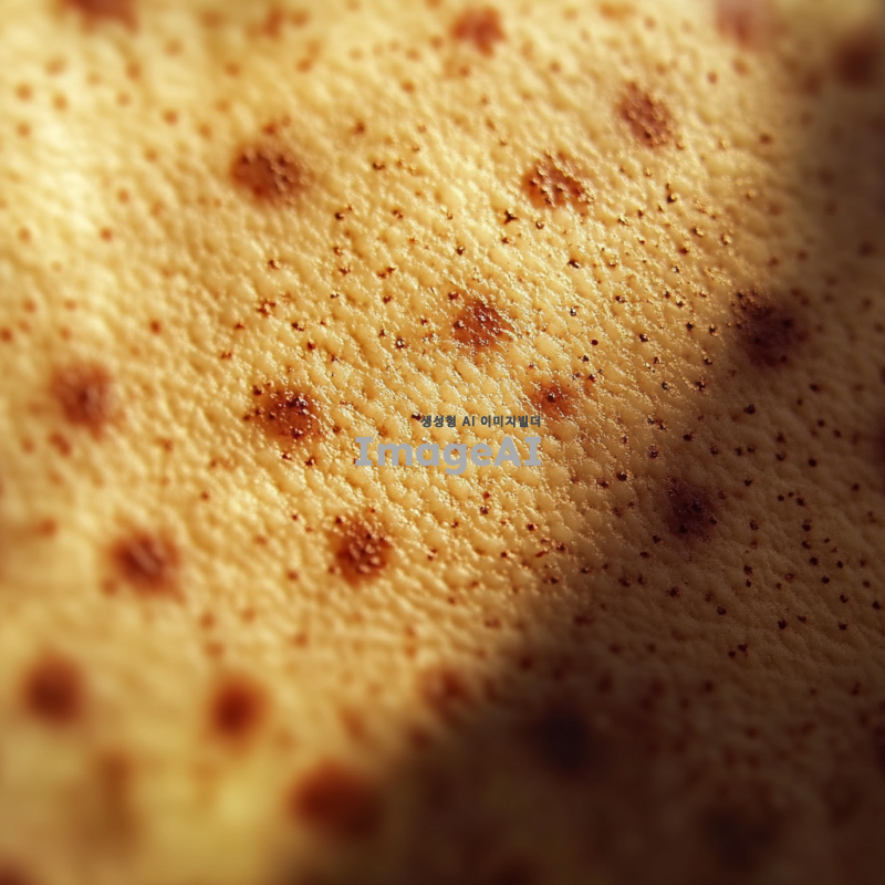 두드러기가 있는 한국인의 피부를 클로즈업으로 촬영한 이미지, 피부의 발진과 붉은 반점이 잘 드러나도록, 자연광 아래에서 촬영된 듯한 느낌, 배경은 흐릿하게 처리하여 피부에 집중할 수 있도록.
