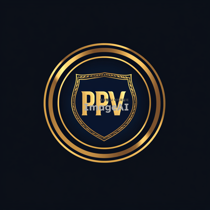 PPV라는 이름의 로고를 디자인합니다. 현대적이고 전문적인 느낌을 주며, FBI 로고와 유사한 스타일로, 강력한 인상을 남기는 요소를 포함합니다. 색상은 짙은 파란색과 금색을 사용하고, 중앙에 PPV라는 글자를 강조합니다. 로고의 형태는 원형 또는 방패 형태로, 안정감과 신뢰성을 느낄 수 있도록 합니다. 배경은 심플하게 유지하여 로고가 돋보이도록 합니다.