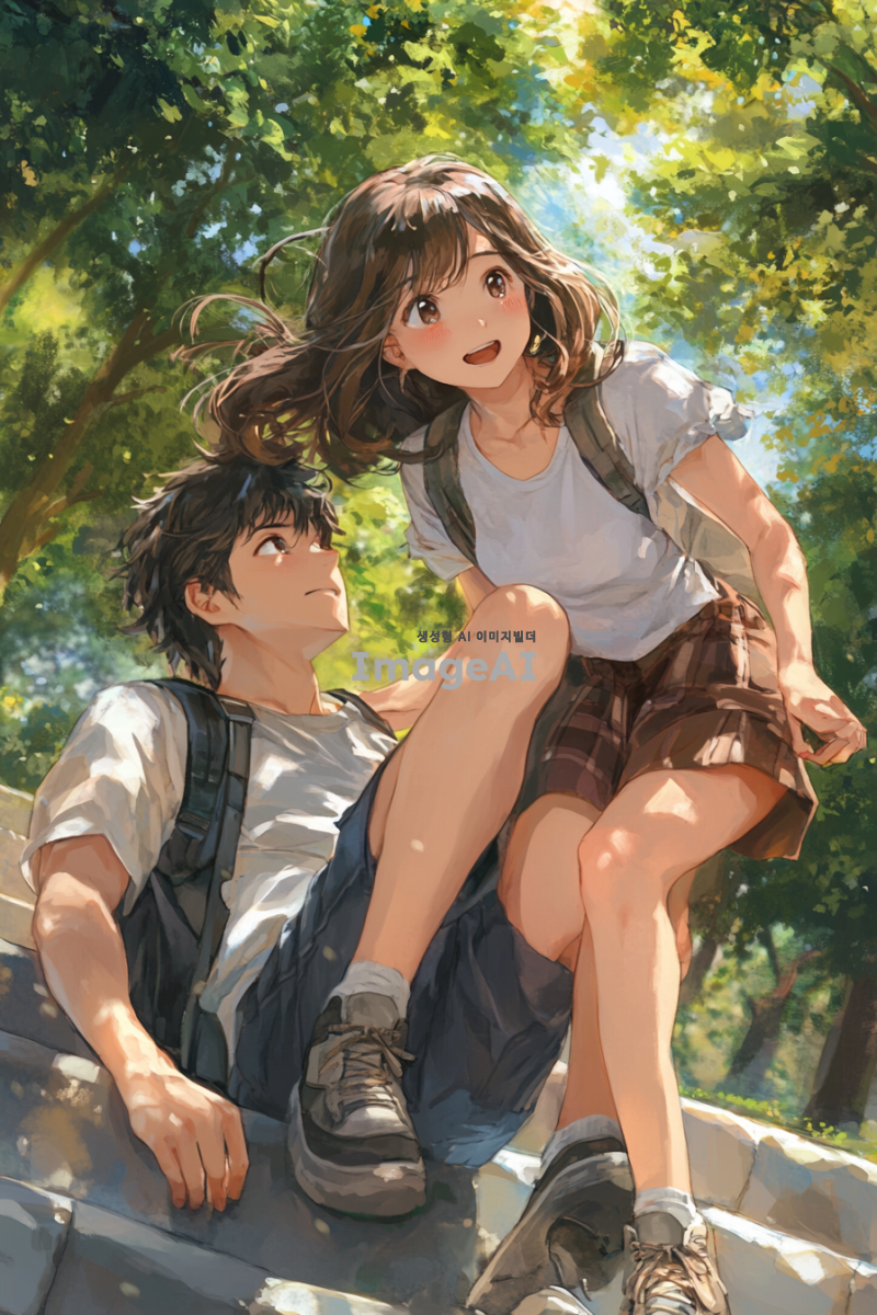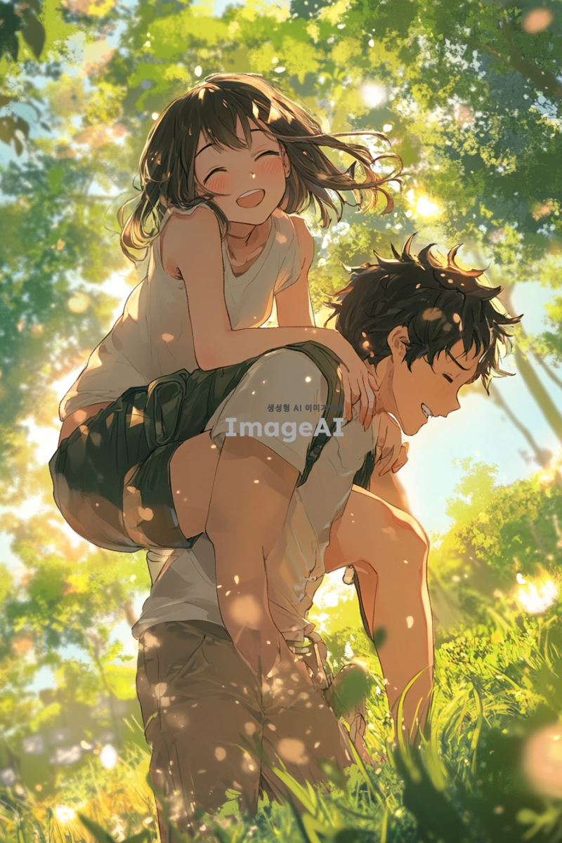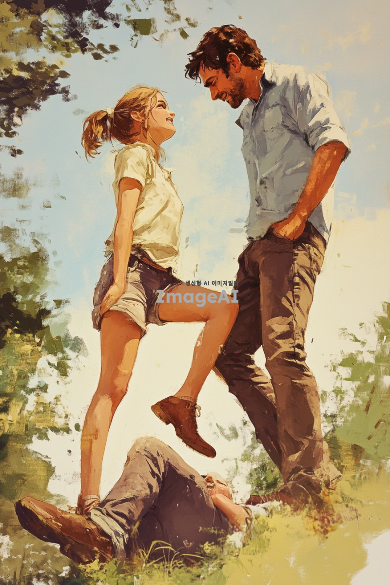 귀여운 여자아이가 자신의 왼쪽 다리로 남자의 등을 밟고 있는 장면. 남자는 힘들어 보이며, 표정에는 애처로움이 묻어나고 있다. 배경은 공원으로, 따뜻한 햇살 아래에서 아이가 즐거워하는 모습과 남자의 고생하는 모습이 대조적으로 나타나도록 구성. 여자아이는 귀엽고 발랄한 스타일로, 남자는 약간 지친 듯한 모습으로 그려져 있다.
