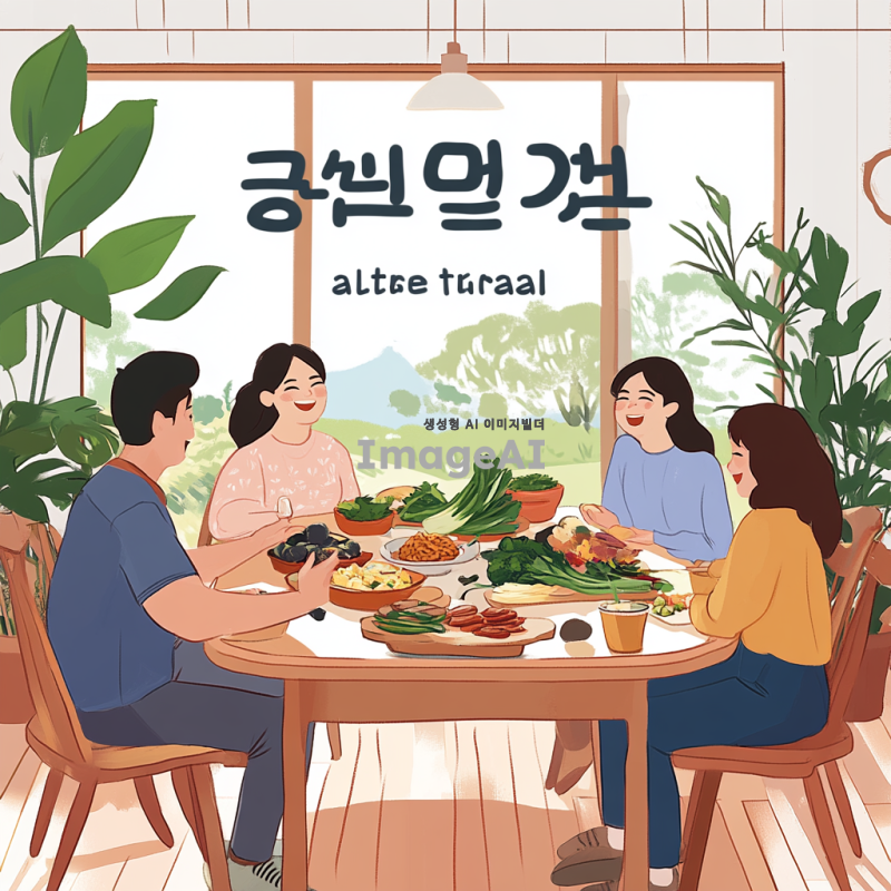 건강한 식단을 나누는 장면, 활기차고 긍정적인 분위기, 자연광이 비치는 밝은 실내 공간, "전목달조"이라는 제목이 크게 적힌 포스터 디자인, 사람들의 웃는 얼굴과 함께 건강한 음식이 담긴 테이블, 동기부여와 협력을 강조하는 메시지, 색감은 생동감 있는 파스텔 톤으로, 전체적으로 따뜻하고 포근한 느낌.