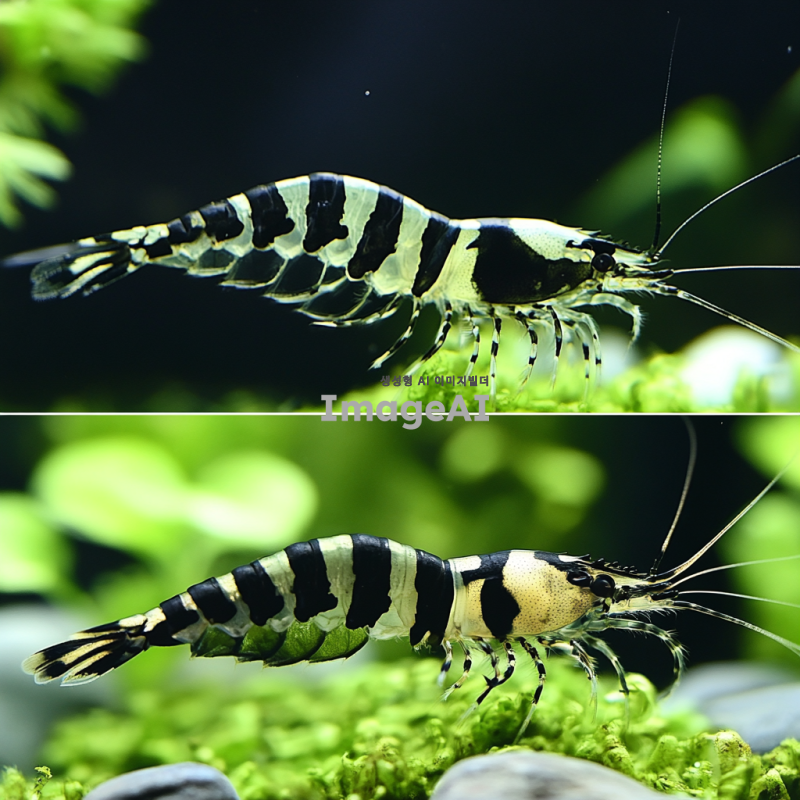 블랙타이거새우가 헤엄치는 모습, 블랙타이거새우 손실 후의 모습, 블랙타이거새우 요리 모습