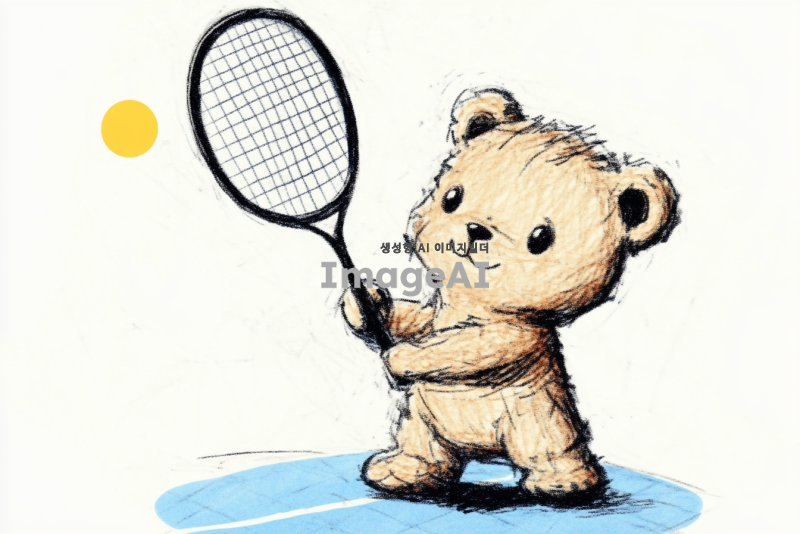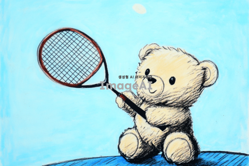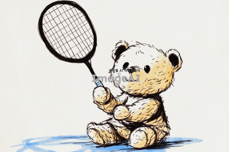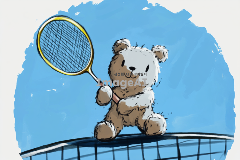 배드민턴을 하고있는 귀여운 곰인형을 그려줘