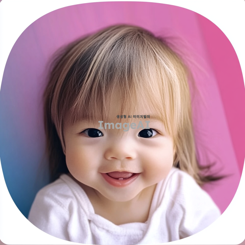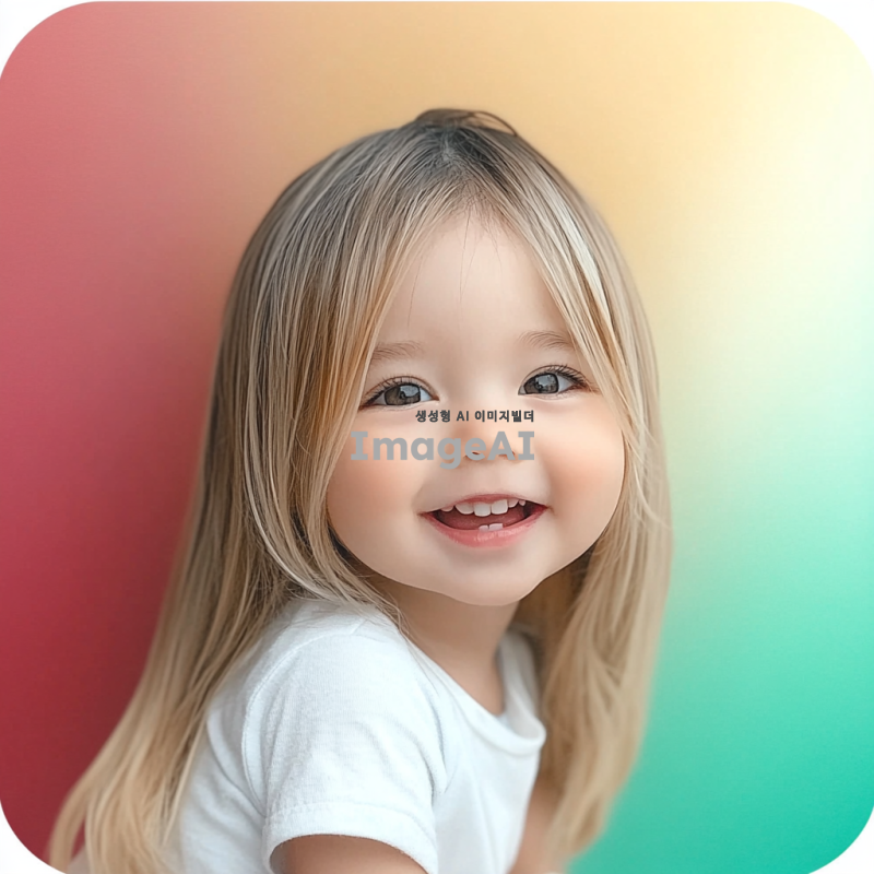 아시아계 유아의 인스타그램 프로필 사진, 긴 금발 머리, 귀엽고 행복한 얼굴, 흰색 옷을 입고 있으며, 아이콘은 다채로운 파스텔 그라데이션 배경과 미니멀하고 단순한 디자인으로 고해상도에서 하이퍼 리얼리즘을 부여합니다.