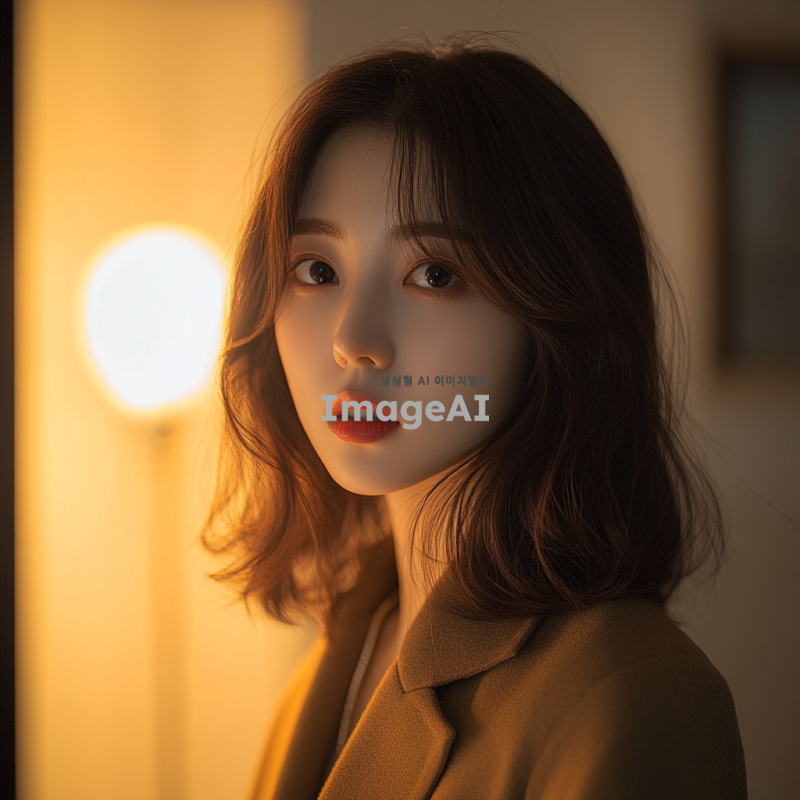 한국인 여성, 자연스러운 표정과 매력을 지닌 모습, 부드러운 조명 아래에서 촬영된 포트레이트, 현대적인 의상, 배경은 아늑한 실내 공간, 따뜻한 색감, 우아한 분위기.