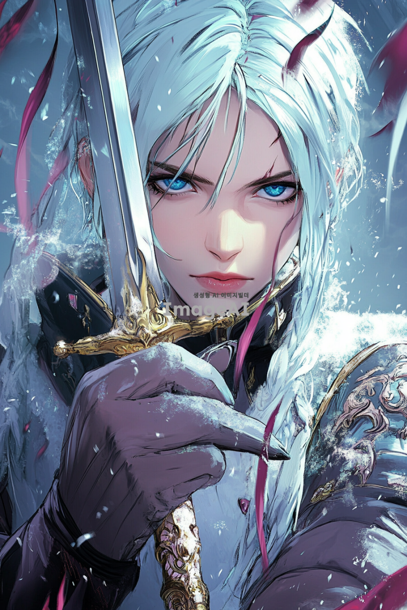 소설 표지. 백발에 벽안인 여자가 표지에 나오게 에니메이션 그림체로.