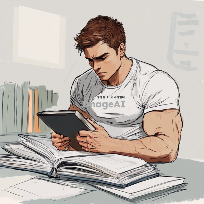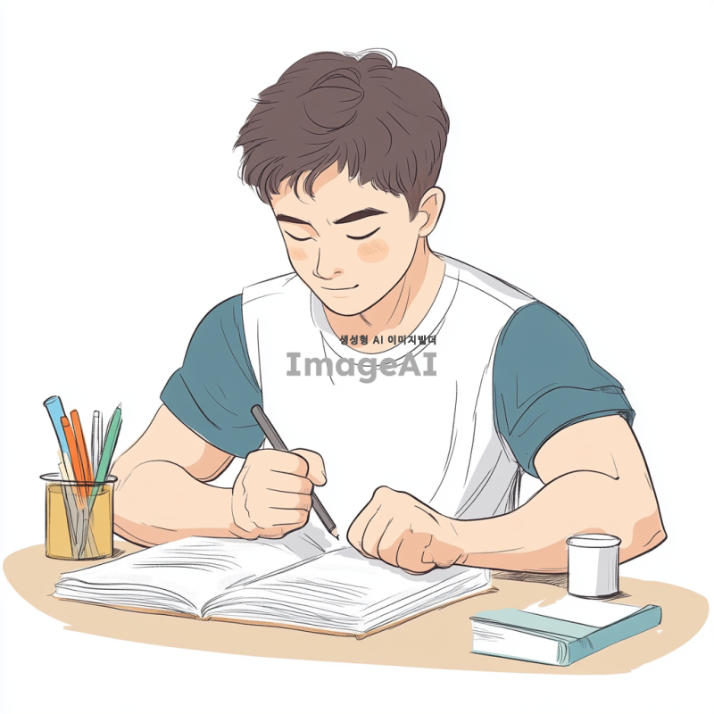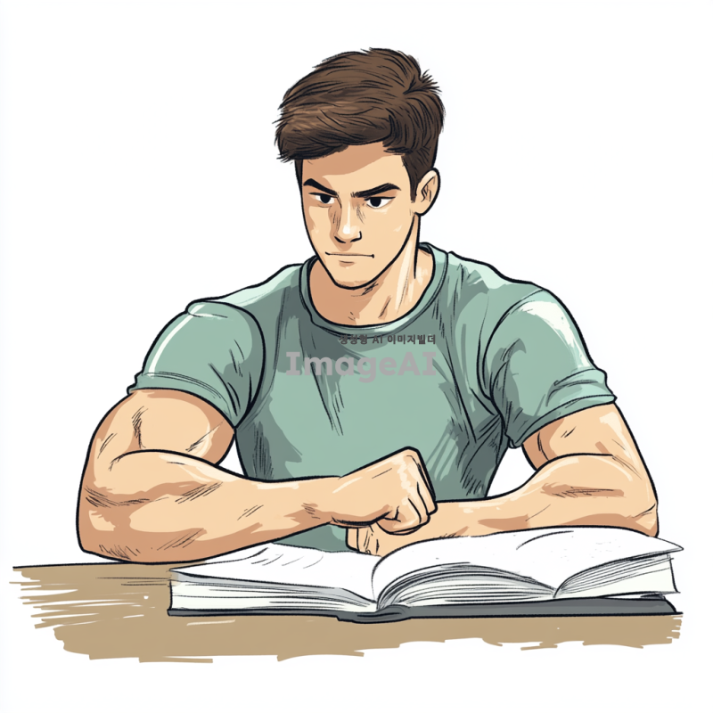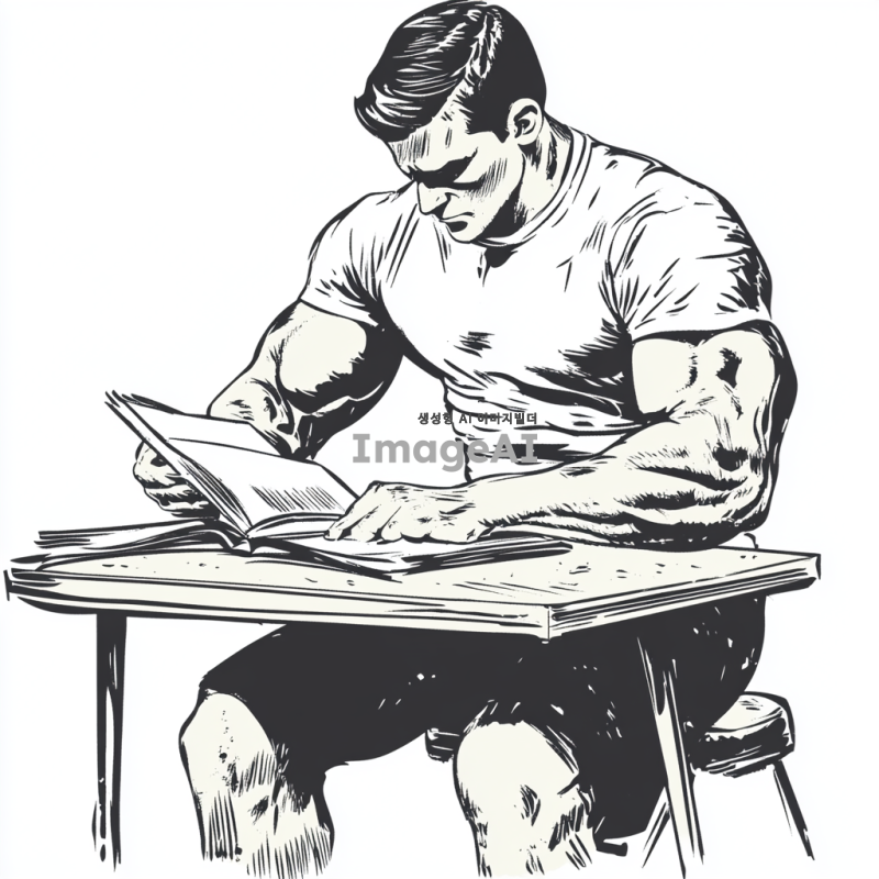 공부에서 벌크업하는 학생 그림을 그려줘