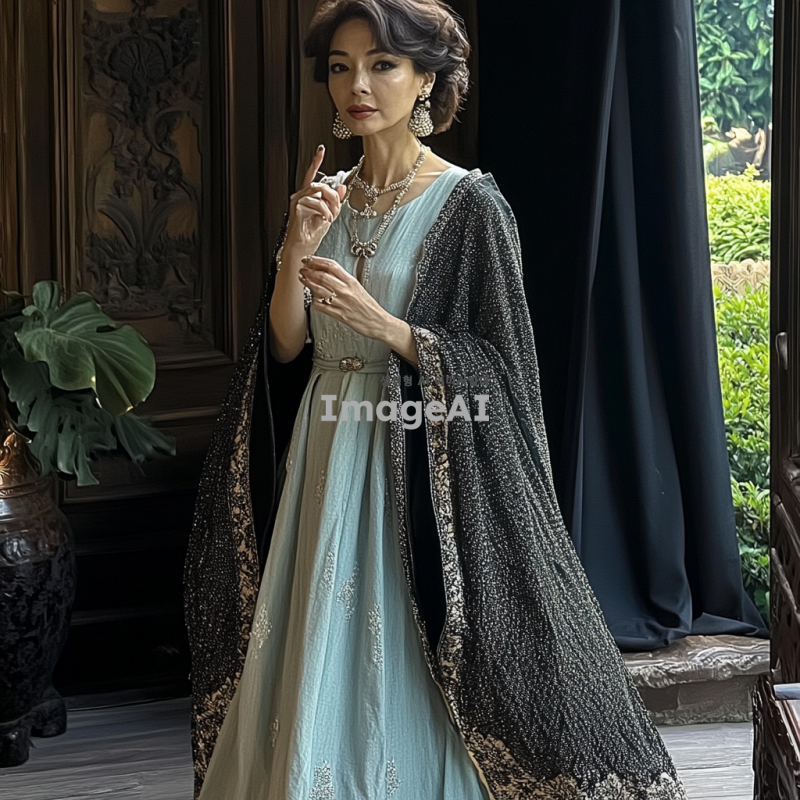 궁전에서 화려한 드레스를 입은 전신 사진 어울리는 주얼리도 함께