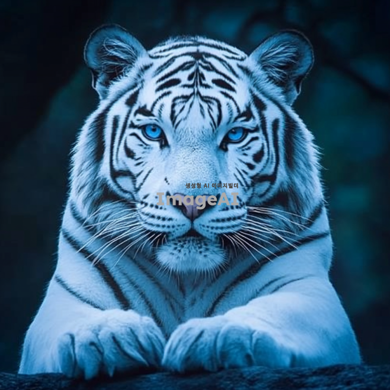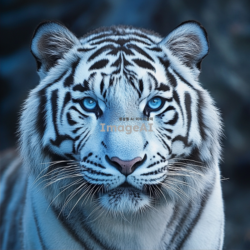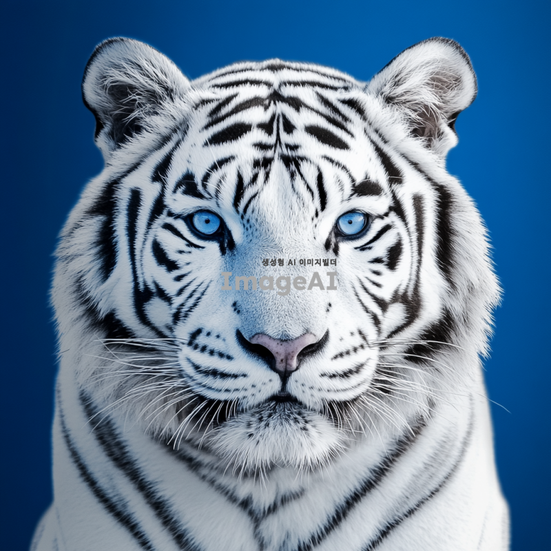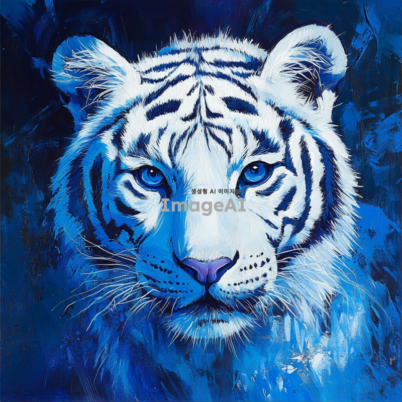 하얀 백호, 청렴한 느낌, 울트라마린블루 컬러 포인트, 아기자기한 느낌, 표정은 대범한