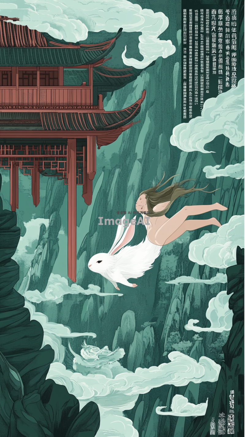 사자성어 "토사구팽"을 주제로 한 일러스트. 배경은 고전적인 중국 풍경으로, 한쪽에는 토끼가 도망가고 있는 모습, 다른 쪽에는 사냥꾼이 토끼를 놓친 개를 바라보며 냉정하게 웃는 장면을 그린다. 전체적인 색감은 차가운 느낌으로, 각각의 캐릭터는 감정을 잘 표현하고 있어야 한다.
