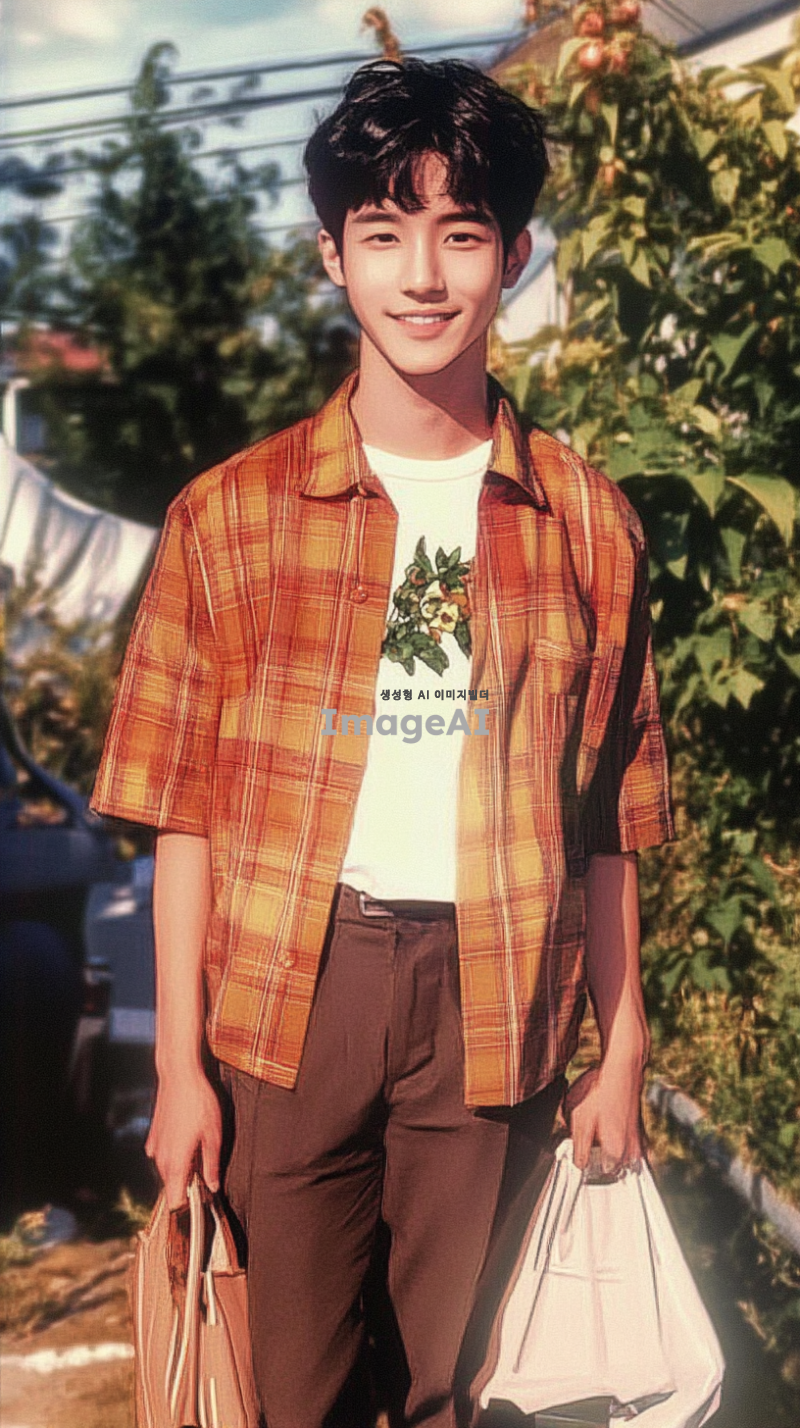어린 시절의 나의 모습을 바탕으로, 성인이 되었을 때의 모습 상상하기. 밝은 미소를 지닌 한국인 남성, 중간 길이의 검은 머리, 세련된 캐주얼 복장, 현대적인 도시 배경, 자신감 넘치는 포즈, 따뜻한 분위기, 꿈과 희망을 품고 있는 눈빛.