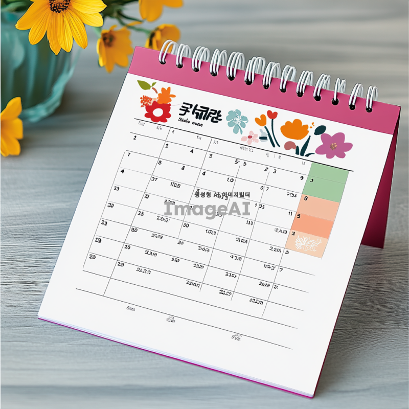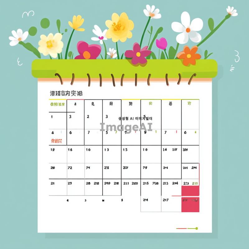 스프링 디자인의 달력, 상단에 스프링 장식이 강조된 형태