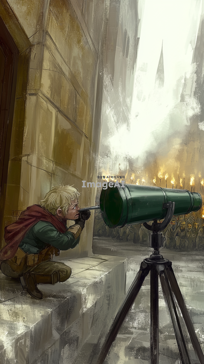 가벼운 갑옷을 입은 드워프 정찰병이 요새 벽 가장자리에 서서 망원경을 통해 바라보고 있습니다. 그의 얼굴은 공포로 가득 찼고, 그는 다른 사람들에게 경고하기 위해 몸을 돌렸다. 멀리서 수천 마리의 고블린과 트롤이 앞으로 행진하며 횃불을 들고 어둠 속에서 깜박이는 빛의 바다를 형성합니다. 거대한 공성 병기가 앞으로 굴러가며 희미한 빛 속에 긴 그림자를 드리운다가벼운 갑옷을 입은 드워프 정찰병이 요새 벽 가장자리에 서서 망원경을 통해 들여다보고 있습니다. 그의 얼굴은 공포로 가득 찼고, 그는 다른 사람들에게 경고하기 위해 몸을 돌렸다. 멀리서 수천 마리의 고블린과 트롤이 앞으로 행진하며 횃불을 들고 어둠 속에서 깜박이는 빛의 바다를 형성합니다. 거대한 공성 병기가 앞으로 굴러가며 희미한 빛 속에 긴 그림자를 드리운다.