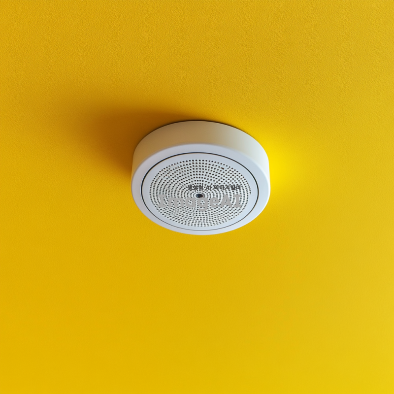 노란색 천장에 설치된 연기 감지기,