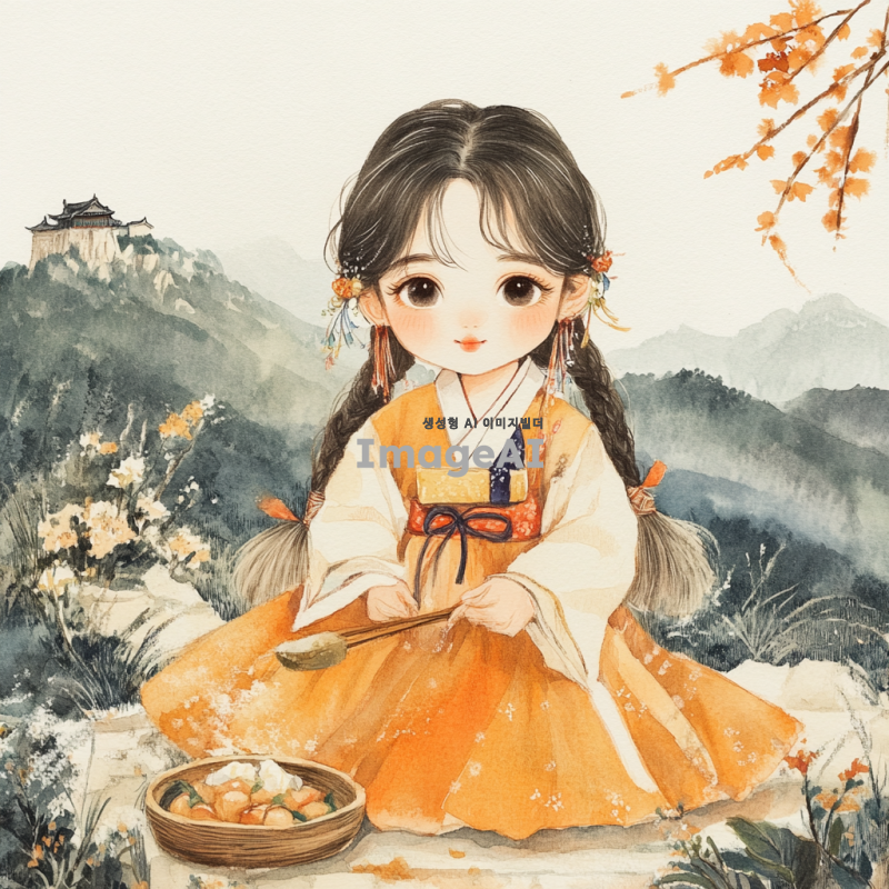 한국의 전통적인 육사시미를 주제로 한 그림, 귀엽게